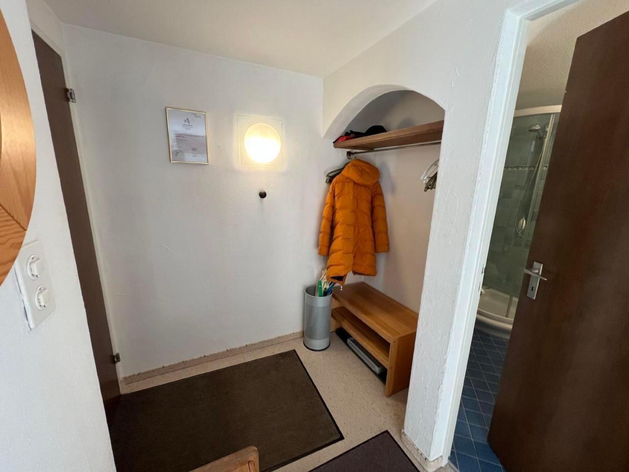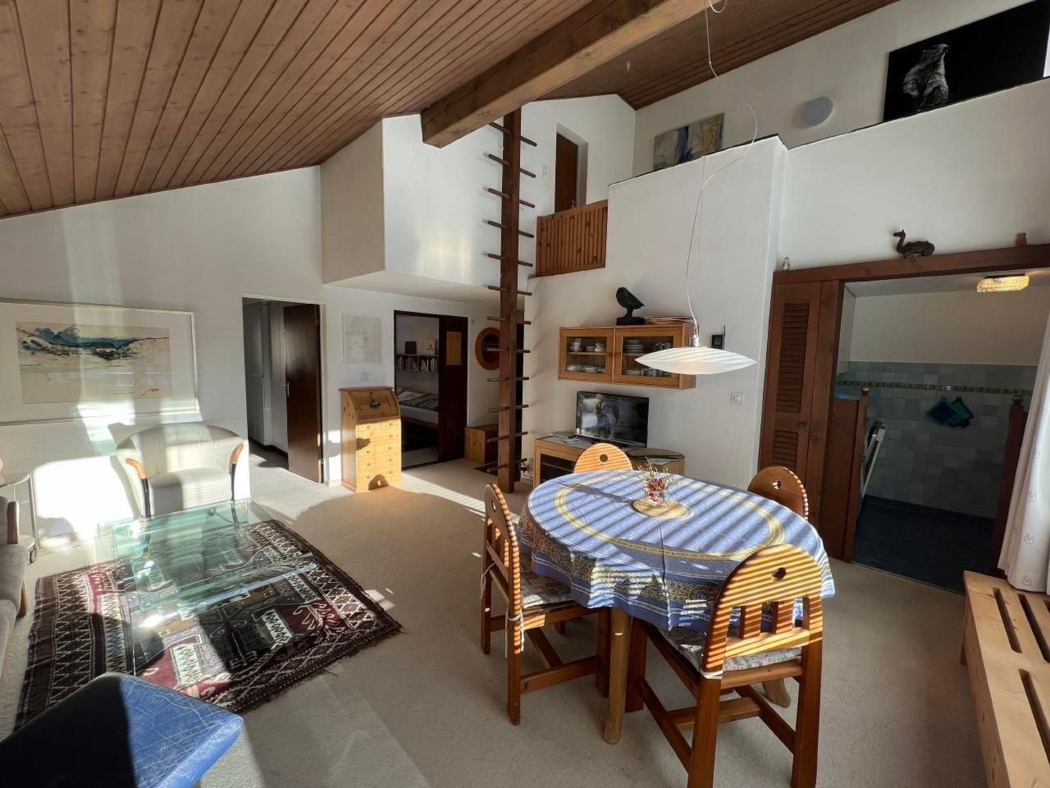 Im Inneren der Wohnung finden Sie ein gemütliches Wohn- / Esszimmer mit Zugang zum Balkon, ideal zum Entspannen nach einem ereignisreichen Tag. Die Wohnung verfügt über ein Schlafzimmer mit einem Doppelbett und ein weiteres mit zwei Einzelbetten, perfekt für Familien oder eine Gruppe von Freunden. Eine gut ausgestattete Küche mit Nesspresso Kaffeemaschine und einem Fondue-Raclette-Set steht bereit, um lokale Delikatessen zuzubereiten. Komplettiert wird die Innenausstattung durch ein modernes Badezimmer mit Dusche.
