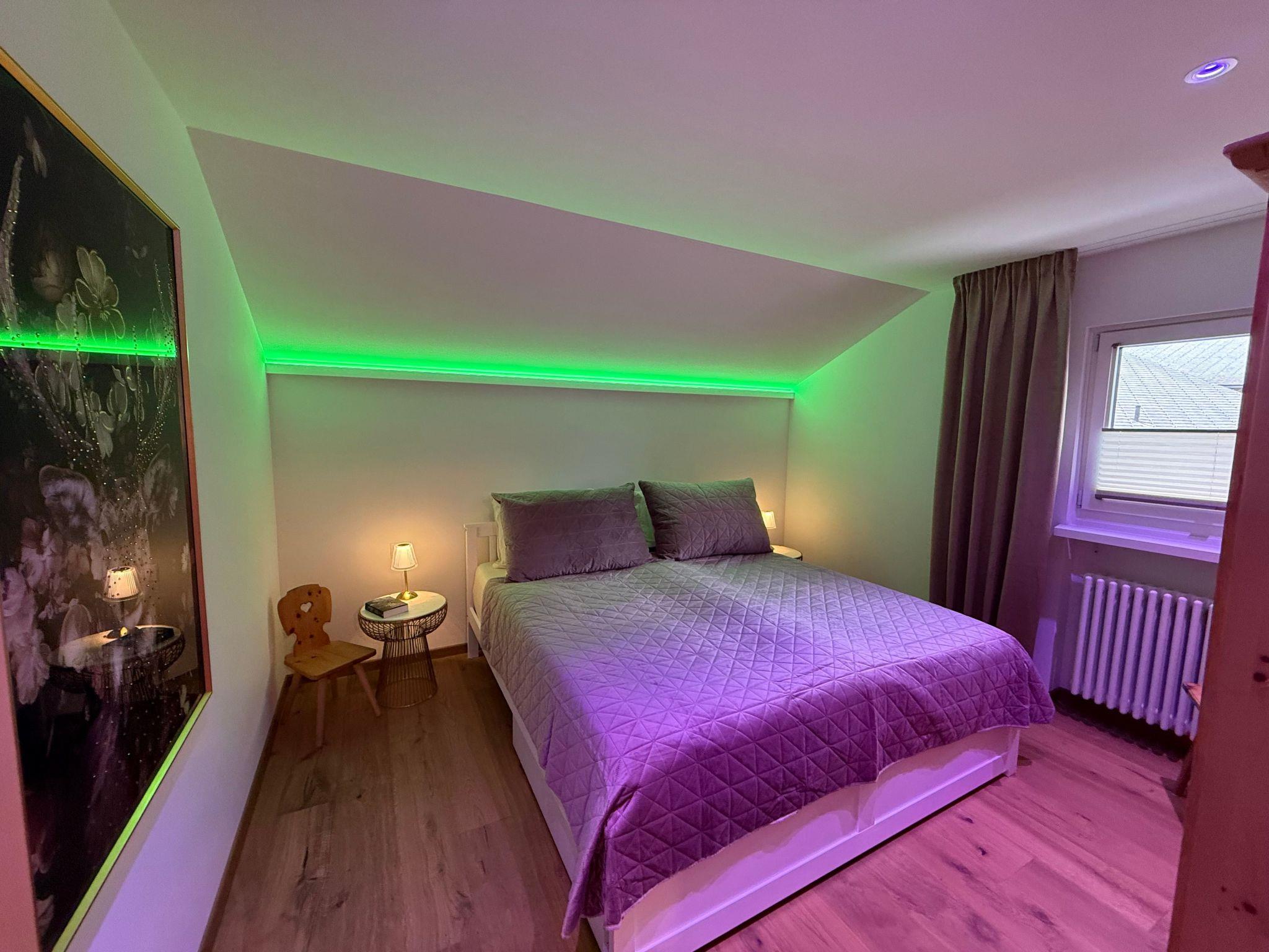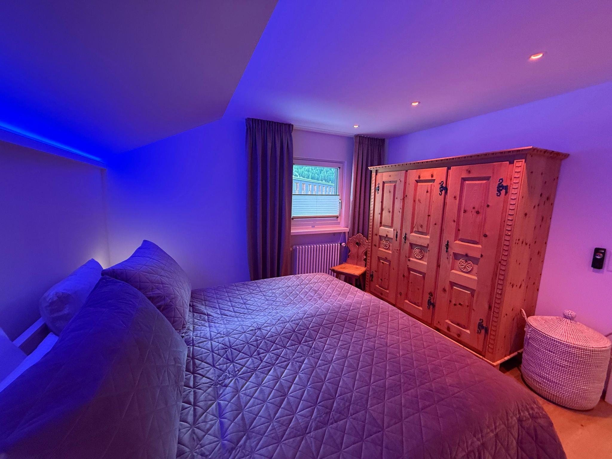 Schlafzimmer mit bequemem Doppelbett (1,80m) und hochwertiger Bettwäsche von Daniel&Jenny made in Switzerland