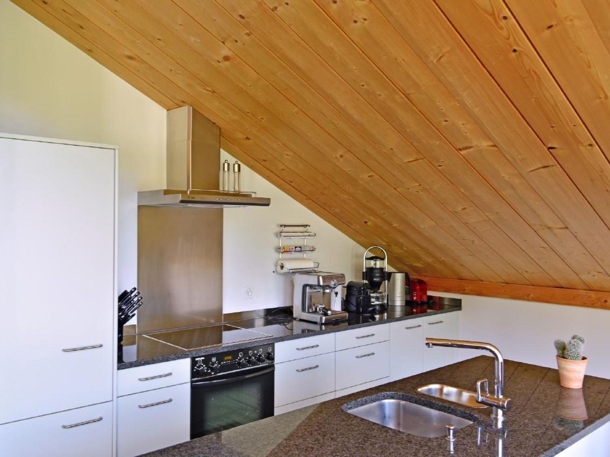 Wohnung. Moderne, grosszügige und sehr helle 2,5-Zimmerwohnung im Dachgeschoss (Treppe über 2 Geschosse; ohne Aufzug). Grosser Wohn-/Essraum mit offener Küche. Separates Schlafzimmer, Bad mit Dusch-Badewanne, Lavabo und WC. Separater Kofferraum; 2 Dachflächenfenster und grosse Fensterfront nach Süden. Letzte Renovation (Bad und Schlafzimmer) 2016. Neuer Balkonbelag 2024.