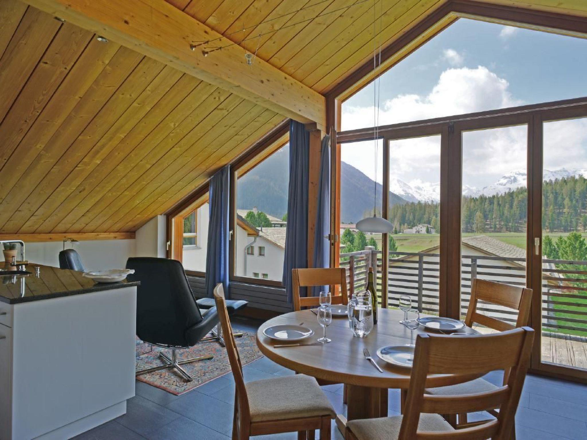 Lage. Absolut ruhige Lage ohne Strassen in der Nähe. Keine Fahrzeuge dirket am Haus. Beste Aussicht auf die Berge und ins Val Bever. Das Haus befindet sich in einer modernen Überbauung mit 6 Einfamilienhäuser (teilweise mit Einliegerwohnungen) und einem Mehrfamilienhaus. Alles ist durch eine unterirdische Auto-Einstellhalle verbunden. Baujahr 2001. Direkter Zugang zum Val Bever: im Sommer biken und wandern; im Winter langlaufen und winterwandern. Nähe zum Dorfzentrum; zu Fuss in 3-4 Minuten.