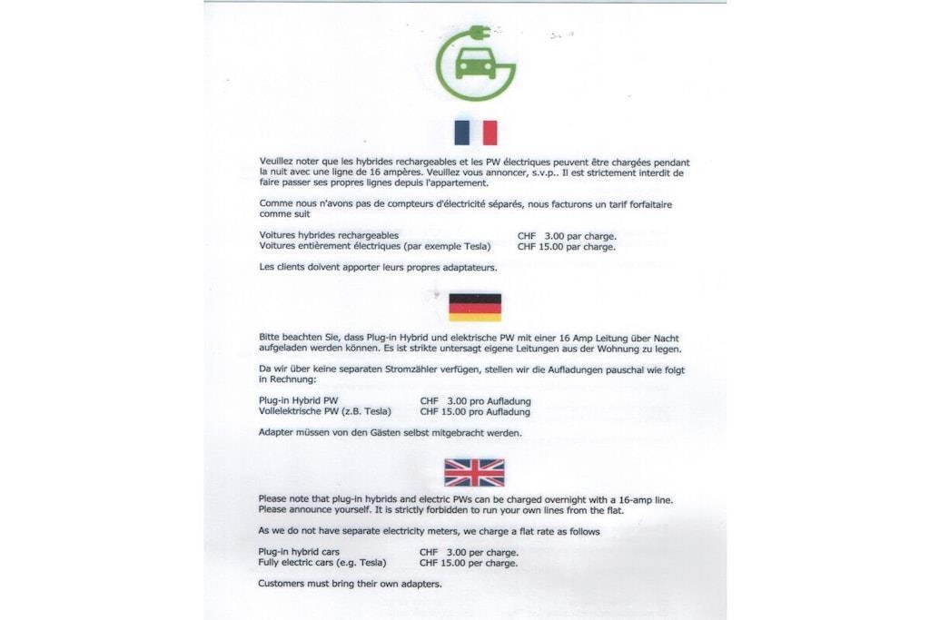 Villa im unteren Teil von Blonay mitten im Grünen, am Ende einer Sackgasse. Absolut ruhige Situation mit Sicht auf See und Berge. Parkplätze direkt vor dem Haus. Auf der grossen Terrasse ist ein Gartenkamin (BBQ) installiert. Diese Wohnung hat einen absolut separaten direkten Eingang! Bei jedem Wechsel werd nebst der normalen Bettwäsche auch die Matratzenschoner gewechselt. 2012 neu umgebaut mit moderner Küche (Abwaschmaschine, Induktionsherd, Mikrowelle, Backofen) und Bad (mit Kombi-Badewanne Dusche-Bad - Artweger - geeignet zum bequemen Ein- und Ausstieg). Warum haben wir so wenig Bewertungen? Seit Jahren kommen immer wieder unsere Stammgäste zu uns, zT. sogar mehr als einmal pro Jahr. Das ist doch die beste Referenz! Wir sprechen deutsch, englisch, französisch und portugiesisch. Mehr ausführliche Informationen auf unserer Internetsite. Akltualisierung durch letzte Eintwicklung: Plug-in Hybridfahrzeuge können über Nacht aufgeladen werden zu einem Pauschalpreis von CHF 5,00 pro Aufladung. Für vollelektrische PWs (z.B. TESLA) können wir über Nacht eine 16 AMP Leitung zu Verfügung stellen. Pauschalpreis pro Aufladung CHF 20.00. Adapter müssen von den Gästen selbst mitgebracht werden.