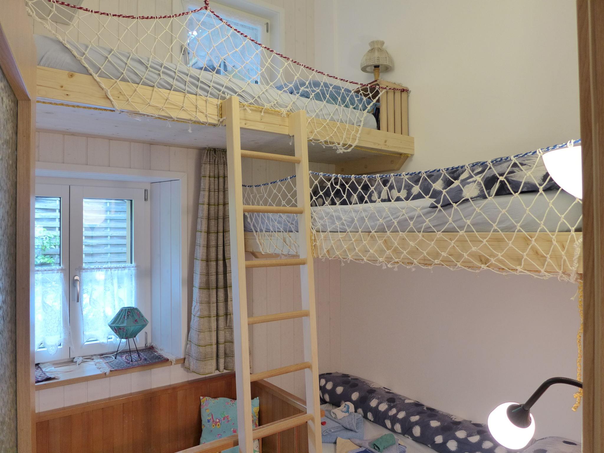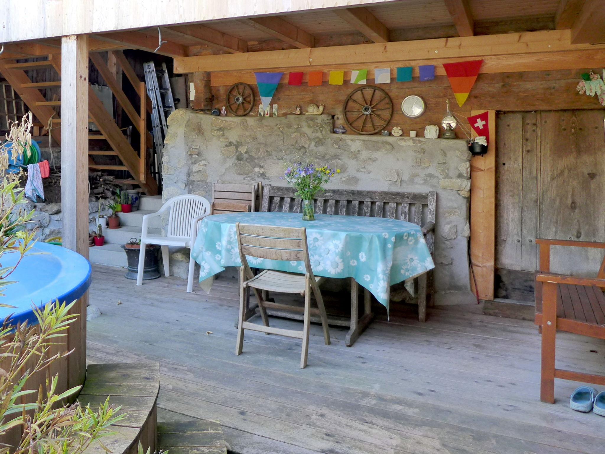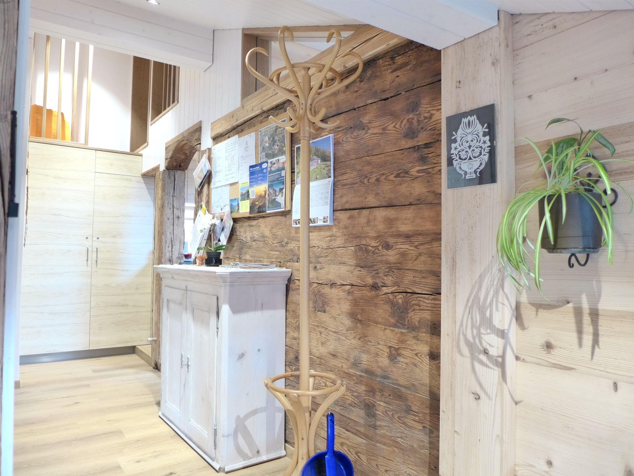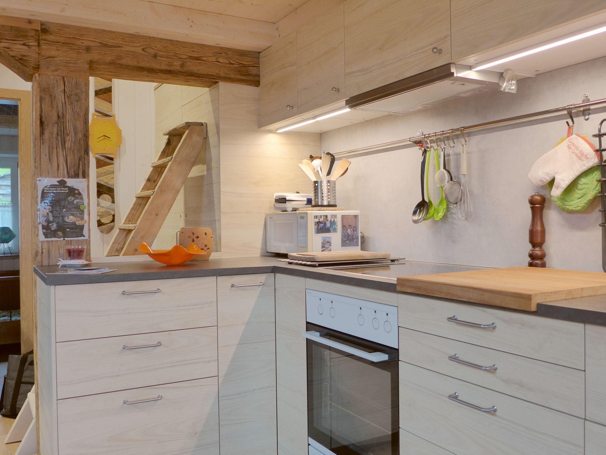 "Beim Thor Klein", 2-Zimmer-Wohnung 40 m2, im Obergeschoss. Geräumig und hell, einfach und gemütlich eingerichtet: offenes grosses Wohn-/Schlafzimmer mit 2 Betten (90 cm, Länge 200 cm), Esstisch, Flachbildschirm, Radio, Stereoanlage und DVD. 1 Zimmer mit 1 x 2 Etagenbetten (90 cm, Länge 200 cm). Offene Küche (Backofen, Geschirrspüler, 3 Glaskeramikplatten, Toaster, Wasserkocher, Mikrowelle, elektrische Kaffeemaschine, Kapseln für die Kaffeemaschine (Delizio) extra, Racletteofen, Fondue Set (Käse)). Dusche/WC. Kleine Terrasse. Balkonmöbel. Schöne Sicht auf die Berge und die Landschaft. Zur Verfügung: Babybett bis 2 Jahre (extra), Haartrockner. Internet (WLAN, gratis). Parkplatz (1 Auto). Bitte beachten: Nichtraucher-Unterkunft. Maximal 1 Haustier/Hund erlaubt.