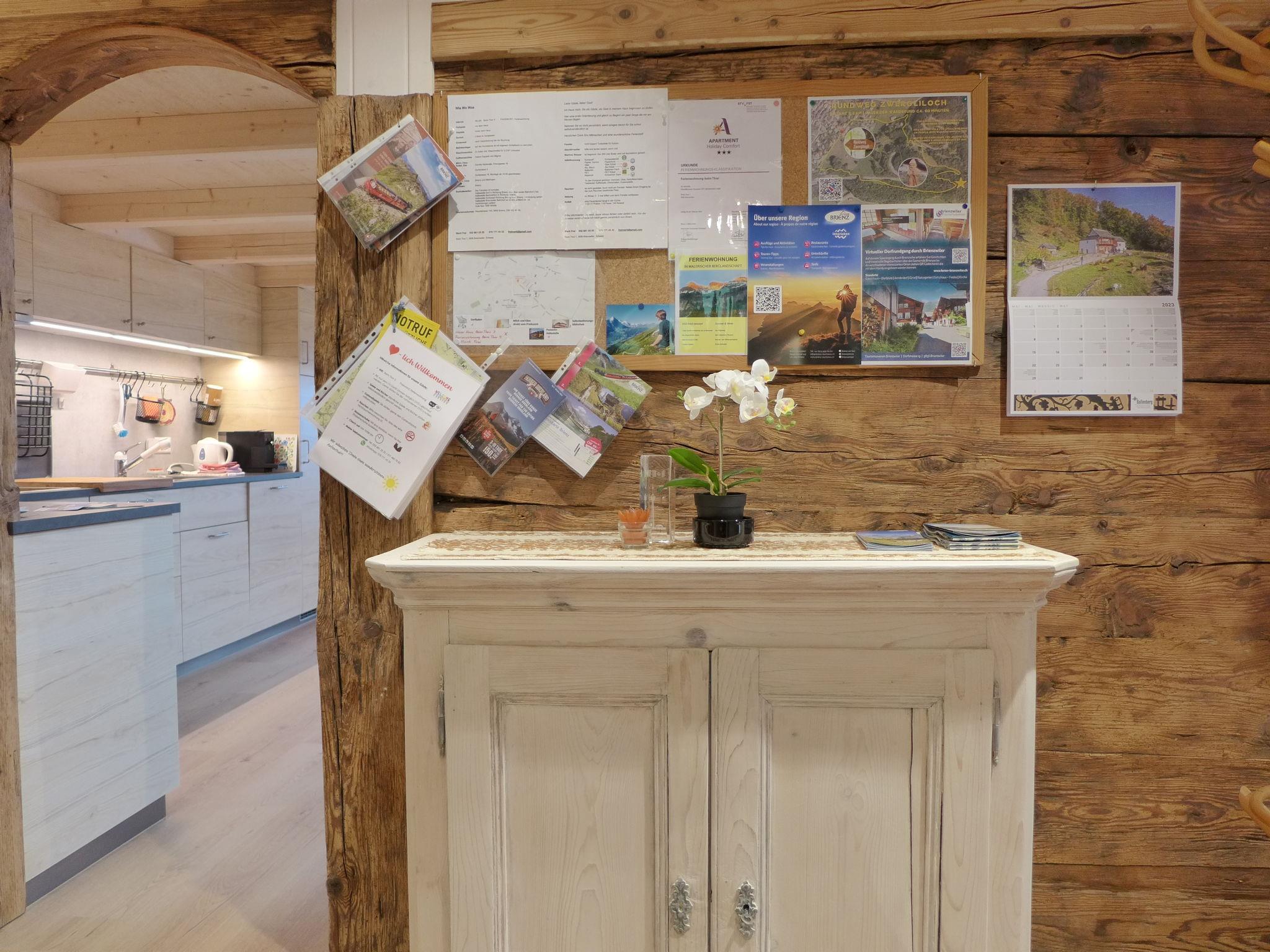 Brienzwiler 5 km von Brienz: Historisches Chalet auf 3 Stockwerken, aus dem 18. Jahrhundert, renoviert im Jahre 2023. Ruhige, sonnige Lage in einem Wohnquartier. Zur Mitbenutzung: Terrasse, Gartenmöbel. Im Hause: Einstellraum für Fahrräder, Zentralheizung. Schmale Zufahrt bis zum Haus. Parkplatz beim Haus. Lebensmittelgeschäft 30 m, Supermarkt 7 km, Restaurant 1.3 km, Bushaltestelle 75 m, Bahnstation "Brienz" 7 km, Freibad 6 km, Hallenbad 10 km. Tennis 7 km, Tennishalle 10 km, Reitstall 1.1 km, Wanderwege ab Haus 10 m, Skisportanlagen 10 km, Eisfeld 6 km. Nahe gelegene Sehenswürdigkeiten: Freilichtmuseum Ballenberg 500 m, Brienz, Aareschlucht. Bekannte Skigebiete sind gut erreichbar: Meiringen-Hasliberg 10 km, Axalp 15 km. Bekannte Seen in der Umgebung sind gut erreichbar: Brienzersee. Wandergebiete: Hasliberg, Rosenlaui. Bitte beachten: Der Besitzer wohnt im selben Haus.