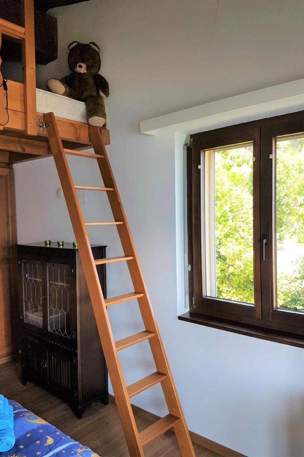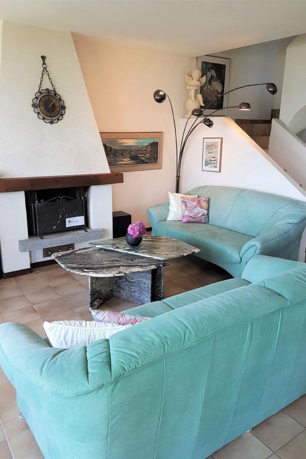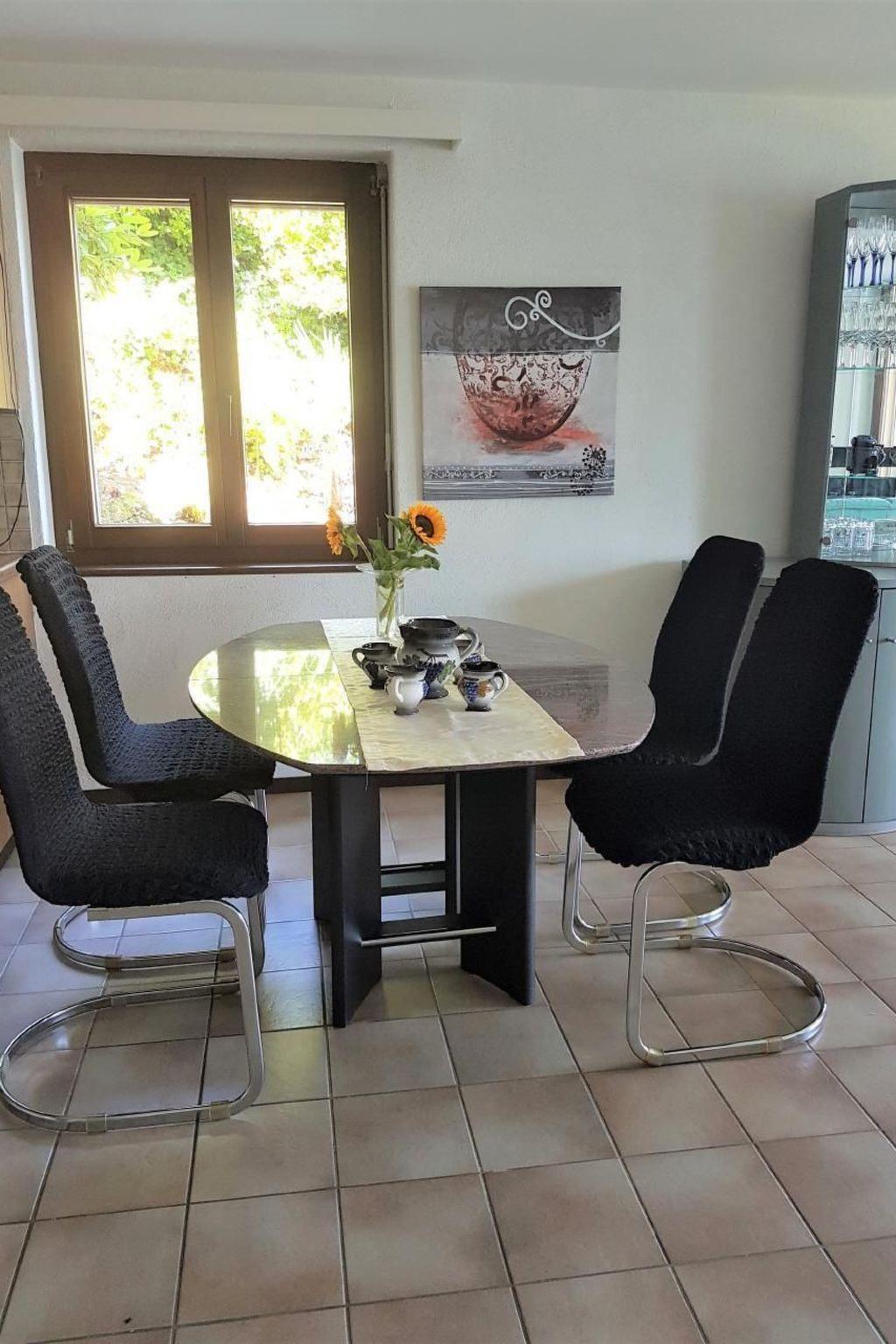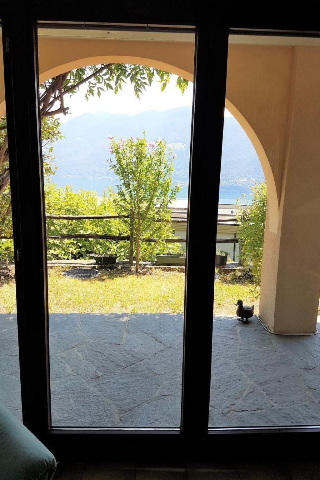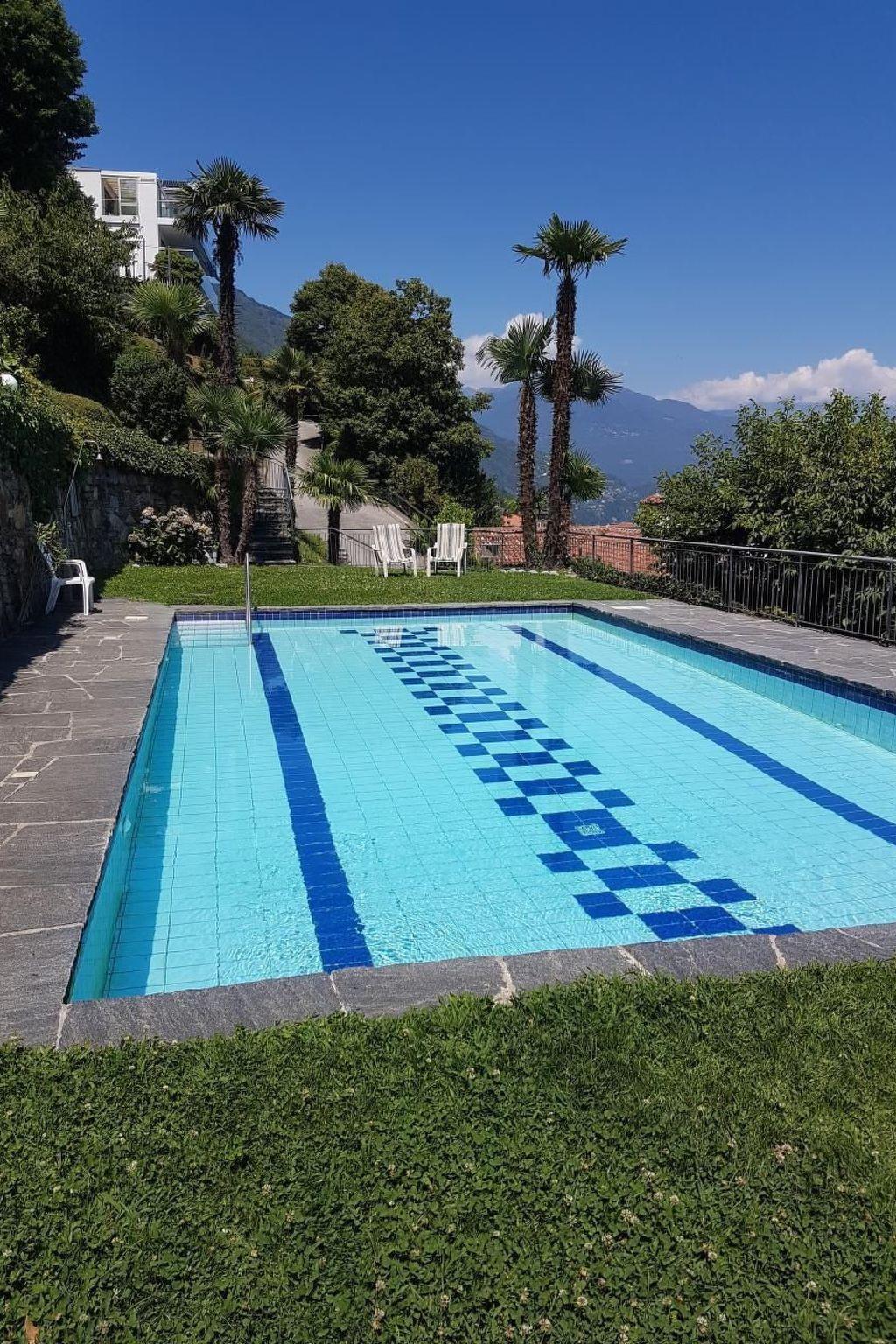 Schöner geht's nicht mehr! Die grosszügige und helle 4.5-Zimmer-Villa oberhalb von Brissago verwöhnt Sie mit einer atemberaubenden 180°-Sicht auf den Lago Maggiore. Der Panoramablick reicht von den Schweizer Alpen mit den Seestädten Locarno und Ascona bis zum italienischen Seebecken. Auch die Schiffsanlegestelle und die nachts beleuchteten Schlösser von Bellinzona sind zu sehen. Ob auf der Terrasse, dem Balkon, im Garten oder zu Hause, Sie haben immer den schönen See vor Augen. Wenn Sie einen erholsamen Urlaub in einer malerischen Umgebung verbringen möchten, heißt Sie die "Villetta Vista Bellissima" willkommen und bietet bequem Platz für bis zu 4 Personen. Das Ferienhaus ist Teil eines charmanten und gepflegten Anwesens mit vier Wohnungen und befindet sich am Ende einer ruhigen Privatstraße, die von einem Wald und Palmenhainen gesäumt ist. Obwohl wir diese Immobilie als Wohnung beworben haben, können Sie Ihr eigenes "Häuschen" genießen, da es viel Privatsphäre bietet. Das Wunderbare an der Villetta ist, dass Sie entweder drinnen oder draußen wohnen können, je nach Lust und Laune und je nach Jahreszeit. Im Außenbereich gibt es neben der großen Pergola und dem Balkon im ersten Stock einen romantischen Gartensitzplatz mit offenem Kamin und einen weiteren abgelegenen, leicht erhöhten Sitzplatz, wo Sie einen gemütlichen Abend mit einem Aperitif genießen können. Wenn es etwas kühler wird, gehen Sie einfach hinein. Im Erdgeschoss erwartet Sie ein gemütlicher Wohn-Essbereich mit einer offenen, gut ausgestatteten Küche. Das Ganze wird gekrönt von einem spektakulären Blick auf den See. Ein Gäste-WC befindet sich direkt daneben. Im Obergeschoss befindet sich das Badezimmer mit Doppelwaschbecken, Badewanne/Dusche und WC, sowie drei Schlafzimmer, alle mit Seeblick: - Ein Schlafzimmer mit Doppelbett und direktem Zugang zum Balkon. - Das zweite Schlafzimmer, ebenfalls mit Zugang zum Balkon, bietet eine ausziehbare Schlafcouch und drei Matratzen auf dem Dachboden, der über eine offene Treppe zu erreichen ist. Ein großer Spaß, nicht nur für die Kinder! - Das dritte Zimmer ist mit zwei Einzelbetten ausgestattet. Wenn Sie nach einer himmlisch ruhigen Nacht das Bedürfnis verspüren, ins kühle Nass zu springen, haben Sie einen kurzen Spaziergang von etwa 7 Minuten vor sich. Es steht Ihnen ein gemeinsamer 11 x 5,5 Meter großer Swimmingpool mit Liegewiese und Außendusche zur Verfügung. Tipp: Die Monate Dezember bis Februar sind die Monate mit den wenigsten Regentagen im Jahr, so dass man schon einige warme Sonnenstunden im Freien verbringen kann. Wer Ruhe und Erholung sucht, wird diese Monate sehr zu schätzen wissen. Wichtiger Hinweis: Es gibt einen direkten Zugang zum Haus, aber nicht zur Wohnung. Der Zugang erfolgt über mehrere Treppen (insgesamt 84 Stufen).