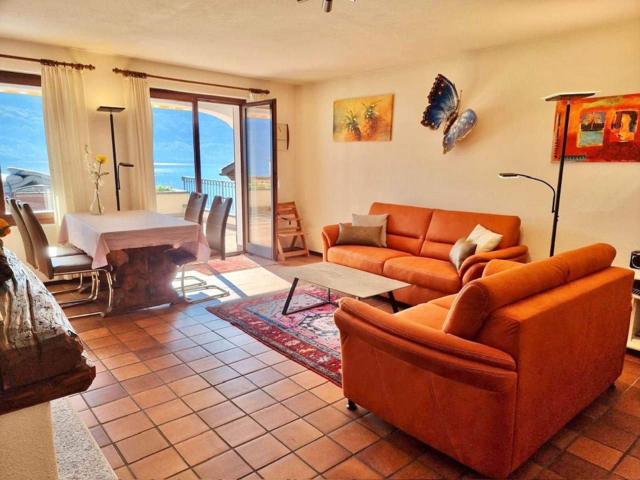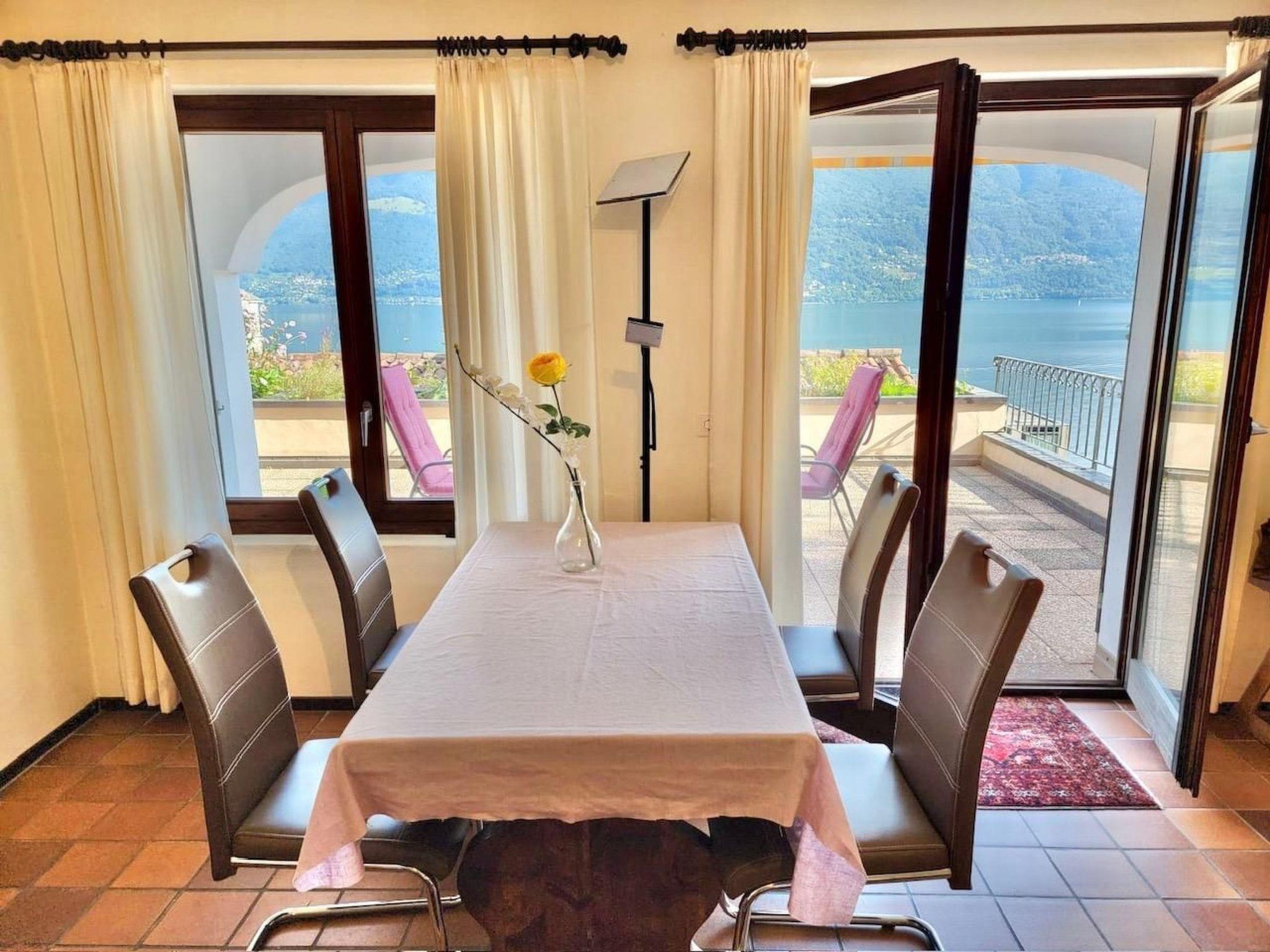 Einzigartig: Ihre Vorteile - Einfach - Gemütlich - Ruhig - Famillienfreundlich mit herrlicher Seesicht - Grosse Terrasse mit herrlicher Panorama Seesicht auf den Lago Maggiore und die umliegenden Berge- Sonnige leicht erhöhte Lage mitten in Brissago- Hallenbad und Sauna im Haus- Tiefgarage mit privatem Parkplatz Nummer "C" direkt neben dem Lift zur Wohnung im 4. Stock- Die Bushaltestelle und die Kursschiffanlegestelle mit Verbindung nach den Brissago Inseln, Ascona, Locarno und Italien sind nur ca. 100 Meter von der Wohnung entfernt.Information über die Wohnungseinheit-------------------------------------------------------Diese charmante und gemütlich eingerichtete 2.5 Zimmerwohnung mit der grossen möblierten Terrasse und dem wunderbaren Ausblick auf den Lago Maggiore liegt nur ca. 150 Meter von der schönen Seepromenade entfernt. Die Ferienwohnung liegt an zentraler Lage mitten in Brissago oberhalb der Hauptstrasse und ist für maximal 4 Personen.Bequem von der Tiefgarage aus erreicht man die Wohnungsetage über einen Lift.Das Appartement ist wie folgt aufgeteilt: Eingangsbereich mit Wandschrank, grossem Wohn- und Essbereich mit offener gut ausgestatteter Küche. Im Wohnbereich hat es ebenfalls zwei Einzelbetten. Ein Schlafzimmer mit einem Boxspring Doppelbett mit Badezimmer und WC sowie zusätzlich ein Gäste - WC im Eingangsbereich.Sowohl vom Wohnzimmer wie auch vom Schlafzimmer aus kann die Terrasse betreten werden.Ein Hallenbad mit Terrasse und eine Sauna sowie ein privater Tiefgaragenplatz Nummer "C" steht den Gästen zur Verfügung.Eine gemeinsame Waschküche mit Waschmaschine und Tumbler steht auf Anfrage ebenfalls zur Verfügung und ist vor Ort Kostenpflichtig.Die gemütliche Ausstattung und die zentrale Lage bieten beste Bedingungen für herrlich entspannte Urlaubstage.Brissago und Umgebung-------------------------------------Das Dorfzentrum mit seinen Läden, Post, Bank, Restaurants, Cafes, etc. sind von der Ferienwohnung zu Fuss in ein paar Gehminuten erreichbar, ebenso die Bushaltestelle und die Kursschiffsanlegestelle von wo Sie Verbindung zu den Brissago Inseln, Ascona, Locarno und der gegenüberliegenden Riviera del Gambarogno haben sowie auch zu allen anderen Schiffsanlegestellen in Italien wie zum Beispiel Cannobio, Stresa, etc. Den Lido von Brissago erreichen Sie ebenfalls in wenigen Minuten zu Fuss. Das Strandbad mit Seeanschluss, Schwimmbecken, Wasserrutsche und Restaurant ist sehr gepflegt und Famillienfreundlich. Die Wasserrutsche ist mit 75 Metern Länge die längste vom ganzen Tessin. Ein Besuch in diesem Lido lohnt sich. Der benachbarte Grenzort Cannobio, wo am Sonntag der berühmte Mercato stattfindet, ist nur wenige Kilometer entfernt. Auch die Tessiner Täler Valle Maggia, das Valle Verzasca oder das Centovalli sind von hier aus mit dem Auto gut zu erreichen.Weitere Aktivitäten und Erlebnisse in der Region sind:- Camelie Park Locarno, Moon & Stars Festival, Locarno Film Festival, Jazz Ascona, etc. - Sport Aktivitäten wie: Mountainbike, Velotouren, Schwimmen, Tennis, Wandern, Wassersport, etc.Details zur Wohnungseinheit-------------------------------------------- 2.5 Zimmer Wohnung, 4. Stock (Lift)- Für maximal 4 Personen- Panoramablick auf See und Berge- Grosszügige Terrasse mit toller Seesicht, möbliert mit Tisch und 4 Stühlen und 2 Liegebetten, Wäschekleiderständer sowie Blumentrögen- Helles Wohn- und Esszimmer mit Panoramafenstern und Ausgang zur Terrasse- Zwei Sofa ( 3 ER und 2.5 ER) und Salontisch- Esstisch mit 4 Stühlen- 1 Kinderstuhl- Satelliten TV- zwei Einzelbetten (90 cm x 200 cm) mit Nachtisch und Stuhl im Wohnbereich- 1 Schlafzimmer mit Boxspring Doppelbett (180 cm x 200 cm), 2 Nachttische, Kleiderschrank, Spiegel, 1 Hocker und 1 Stuhl.Das Schlafzimmer hat ebenfalls ein Ausgang zur Terrasse.- 1 Badezimmer mit Badewanne/Dusche mit Lavabo und WC mit Ausgang in das Schlafzimmer. Ein Haartrockner und eine Personenwaage stehen ebenfalls zur Verfügung. - 1 separates Gäste WC mit Lavabo im Eingangsbereich der Wohnung- Kleine gut ausgestattete Küche mit:- Glaskeramik Kochherd mit Heissluft/Umluft Backofen- Kühlschrank mit kleinem Gefrierfach- Geschirrspüler - Nespresso Kaffeemaschine, Kapseln bitte selbst mitbringen- 1 Privat Parkplatz Nr. "C" in der Tiefgarage im Haus direkt neben dem Lift zur Wohnung- Hallenbad und Sauna im Haus zur Mitbenützung - Starter Kit: Seife/Gel, Toilettenpapier, Wasch Tab für Geschirrspüler und Abfallsack wird bereit gestellt.