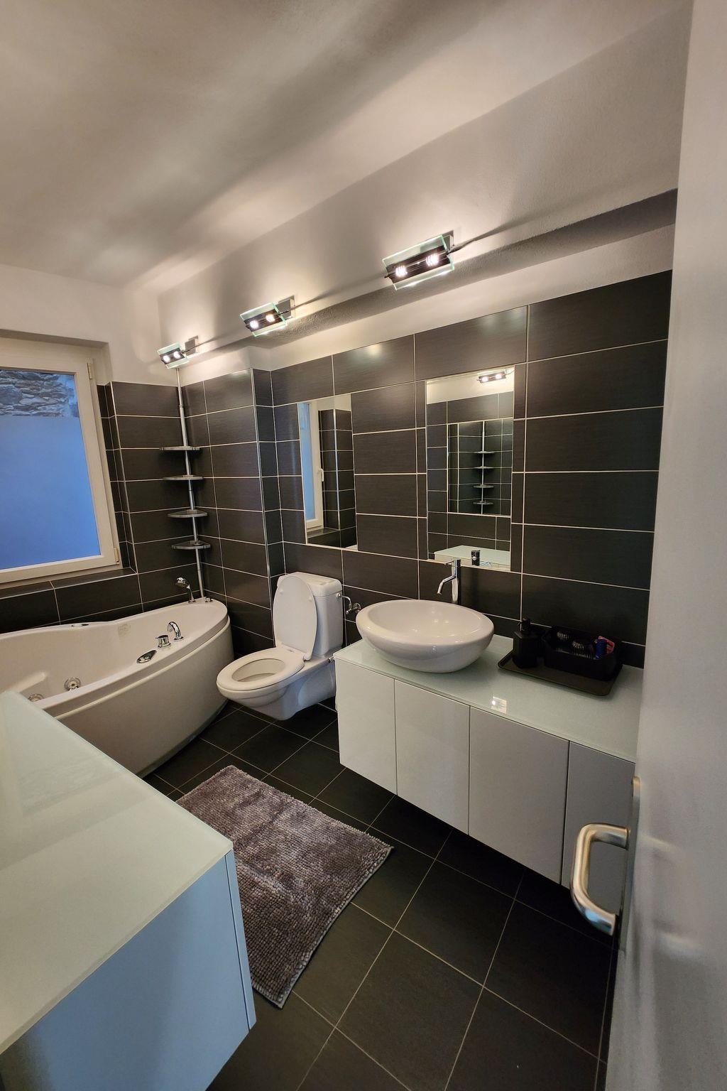 Im Inneren bietet Casa Antonini viel Platz auf zwei Ebenen, wo Sie Komfort und hochwertige Dienstleistungen erwarten. Im Obergeschoss empfängt Sie ein großes Wohnzimmer mit offener Küche, von dem aus Sie einen atemberaubenden Blick auf den Lago Maggiore genießen können. Das Haus verfügt auch über ein Badezimmer mit einer herrlichen Badewanne (keine Whirlpool-Badewanne) für Ihre Momente der Entspannung. In der unteren Etage befinden sich drei Schlafzimmer: zwei Doppelzimmer und ein Einzelzimmer mit zwei 80x200 cm großen Betten sowie ein komplettes Bad mit Badewanne und Dusche. Um Ihren Aufenthalt noch komfortabler zu gestalten, haben Sie auch Zugang zu einer voll ausgestatteten Waschküche.