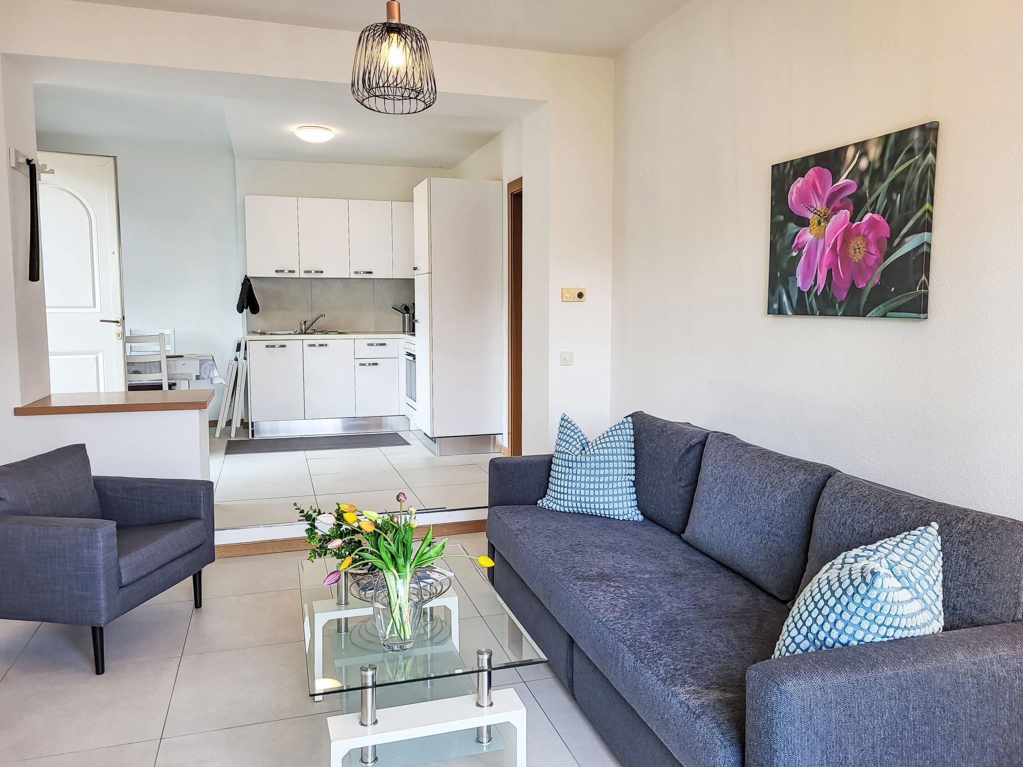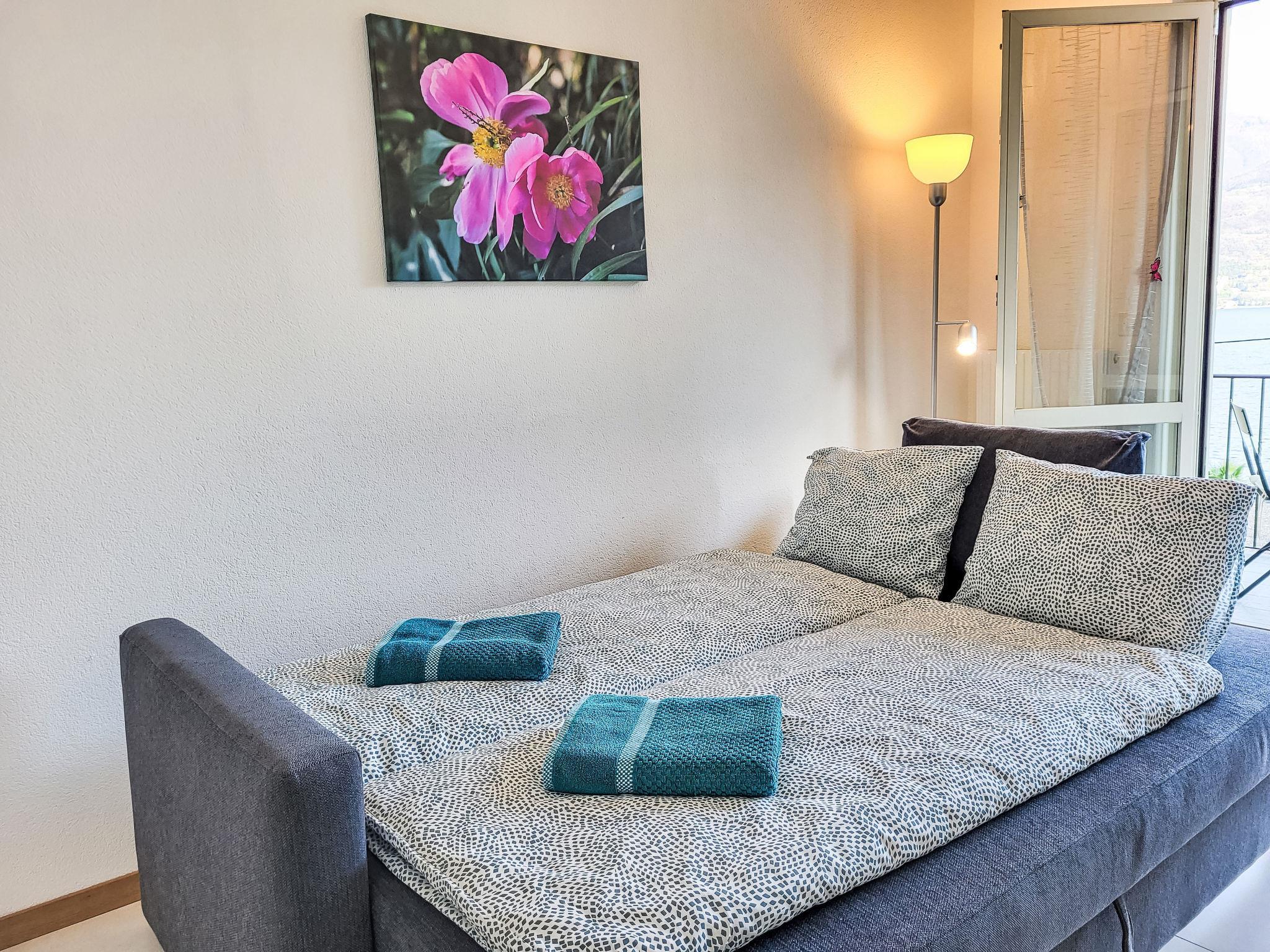 "Casa Stella App. 4", 2-Zimmer-Wohnung 60 m2 im 1. Stock, Südostlage. Objekt geeignet für 2 Erwachsene + 2 Kinder. Geräumig und hell, renoviert im Jahre 2021, modern und gemütlich eingerichtet: offenes Wohn-/Esszimmer mit 1 Diwanbett (160 cm, Länge 200 cm), Esstisch, Kabel-TV und Internationale TV-Sender (Flachbildschirm), Radio. Ausgang zum Balkon, Richtung Südosten. 1 Doppelzimmer mit 1 Doppelbett (160 cm, Länge 200 cm). Offene Küche (Backofen, Geschirrspüler, 4 Glaskeramikplatten, Toaster, Wasserkocher, elektrische Kaffeemaschine, Kapseln für die Kaffeemaschine (Tassimo) extra). Dusche/WC. Heizung. Balkon, Südostlage. Balkonmöbel. Sehr schöne Panoramasicht auf den See, die Berge und die Landschaft. Zur Verfügung: Haartrockner. Internet (Wireless LAN, gratis). Parkplatz Nr. 4 beim Haus. Bitte beachten: Nichtraucher-Unterkunft. Eigener Eingang. NL-00009055