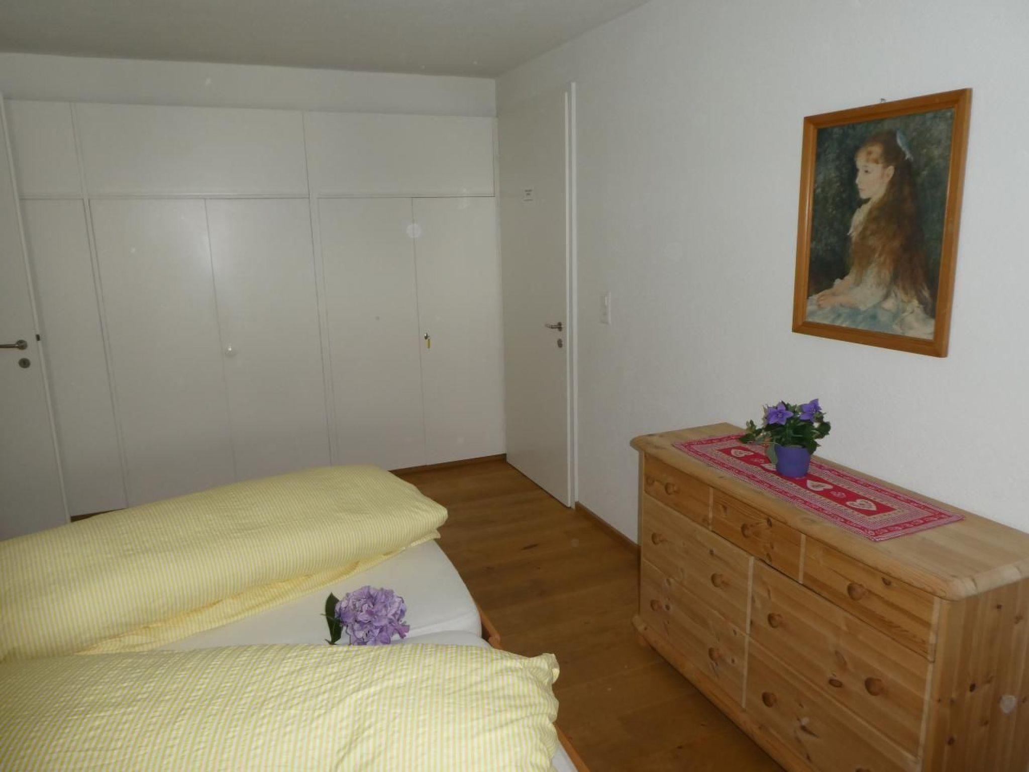 Das Wohnzimmer verfügt über einen Balkon mit schöner Aussicht, über das Dorf Celerina. Ebenso hat es in der Wohnung Telefon WLAN, SAT-TV und Radio. Die Sitz-Essecke lädt zum gemütlichen zusammensein ein.