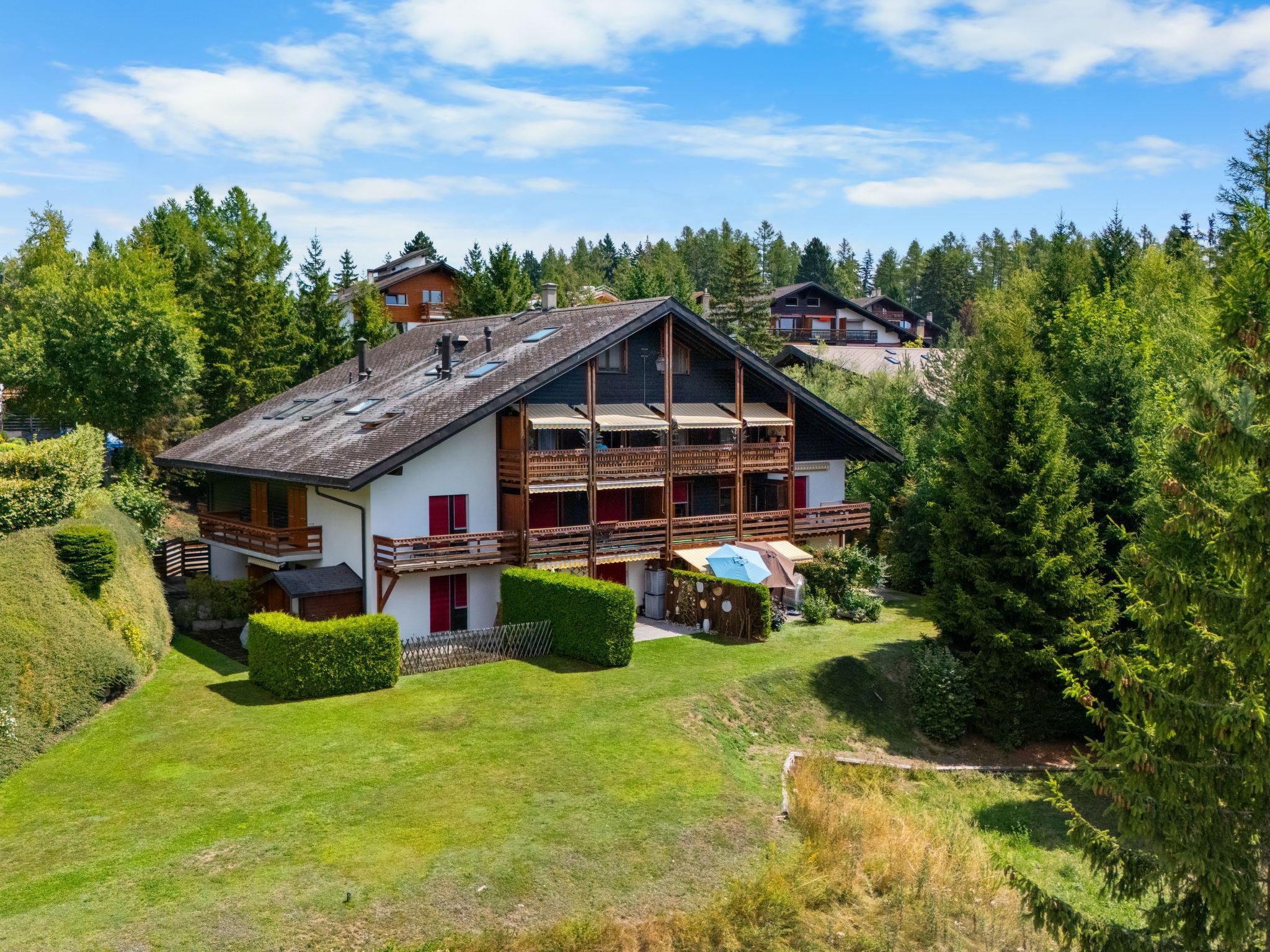 Residenz "Rochemont", Baujahr 1990, umgeben von Bäumen. Unterhalb von Crans, im Ortsteil Route du Golf, ruhige Lage, 1.9 km vom See, 2.7 km vom Skigebiet, in einer Sackgasse, im Grünen. Zur Mitbenutzung: Garten Rasen. Im Hause: Skiraum, Zentralheizung, Waschmaschine, Wäschetrockner (zur Mitbenutzung). Parkplatz. Einkaufsgeschäft 2 km, Supermarkt 2.5 km, Restaurant 500 m, Bäckerei 2.7 km, Bushaltestelle "Crans-Montana, Maroz" 300 m, Bahnstation "Funiculaire Montana Gare" 4.2 km, Badesee "Moubra" 3.4 km. Golfplatz (18 Loch) 1.9 km, Tennis 3.3 km, Skisportanlagen 2.6 km, Schlittelbahn, Langlaufloipe 600 m, Eisfeld 3.4 km. Bekannte Seen in der Umgebung sind gut erreichbar: Lac Moubra 3.4 km, Lac Grenon 3.1 km, Etang Long 1.8 km. Bitte beachten: Gratis Skibus.