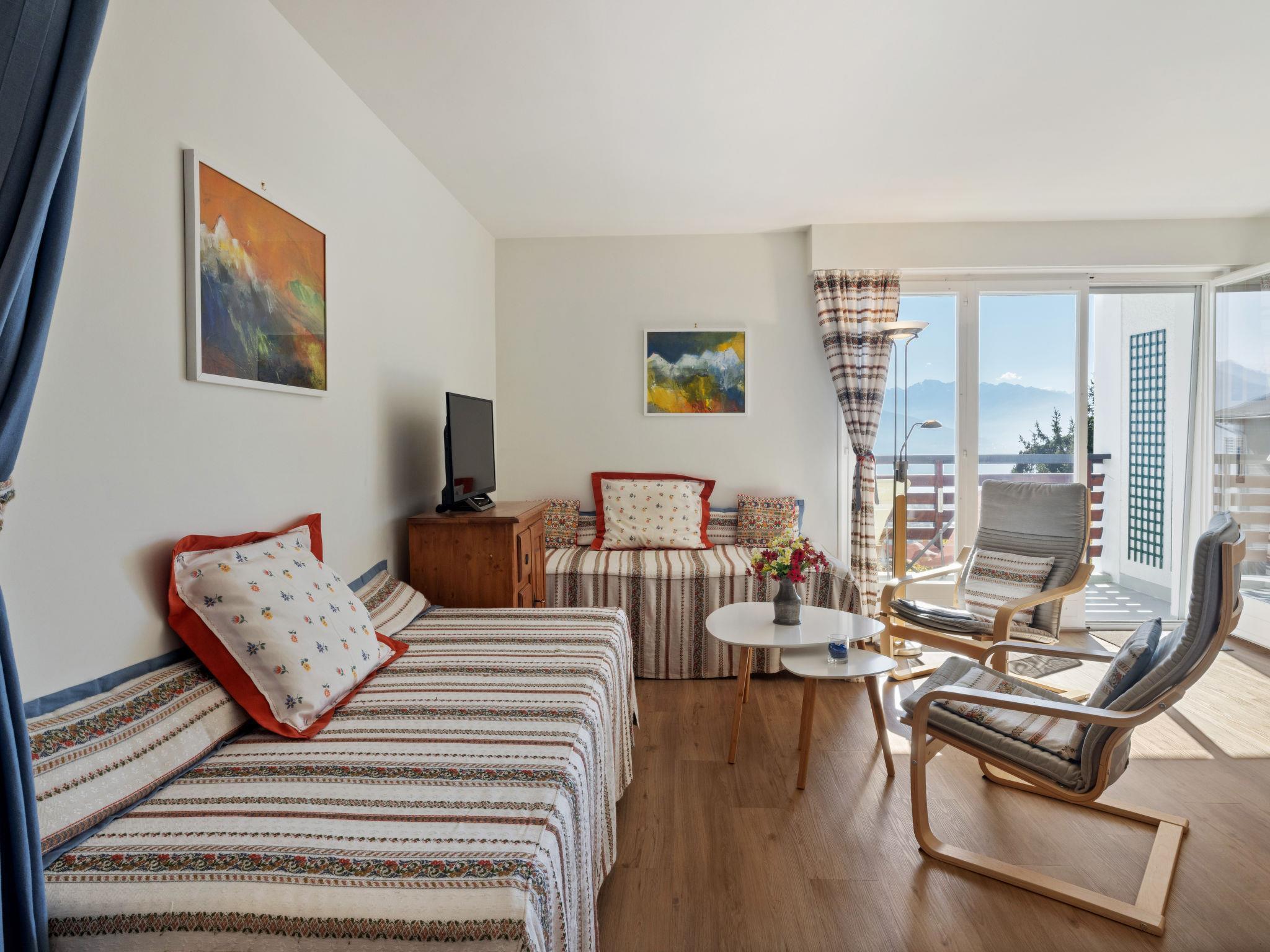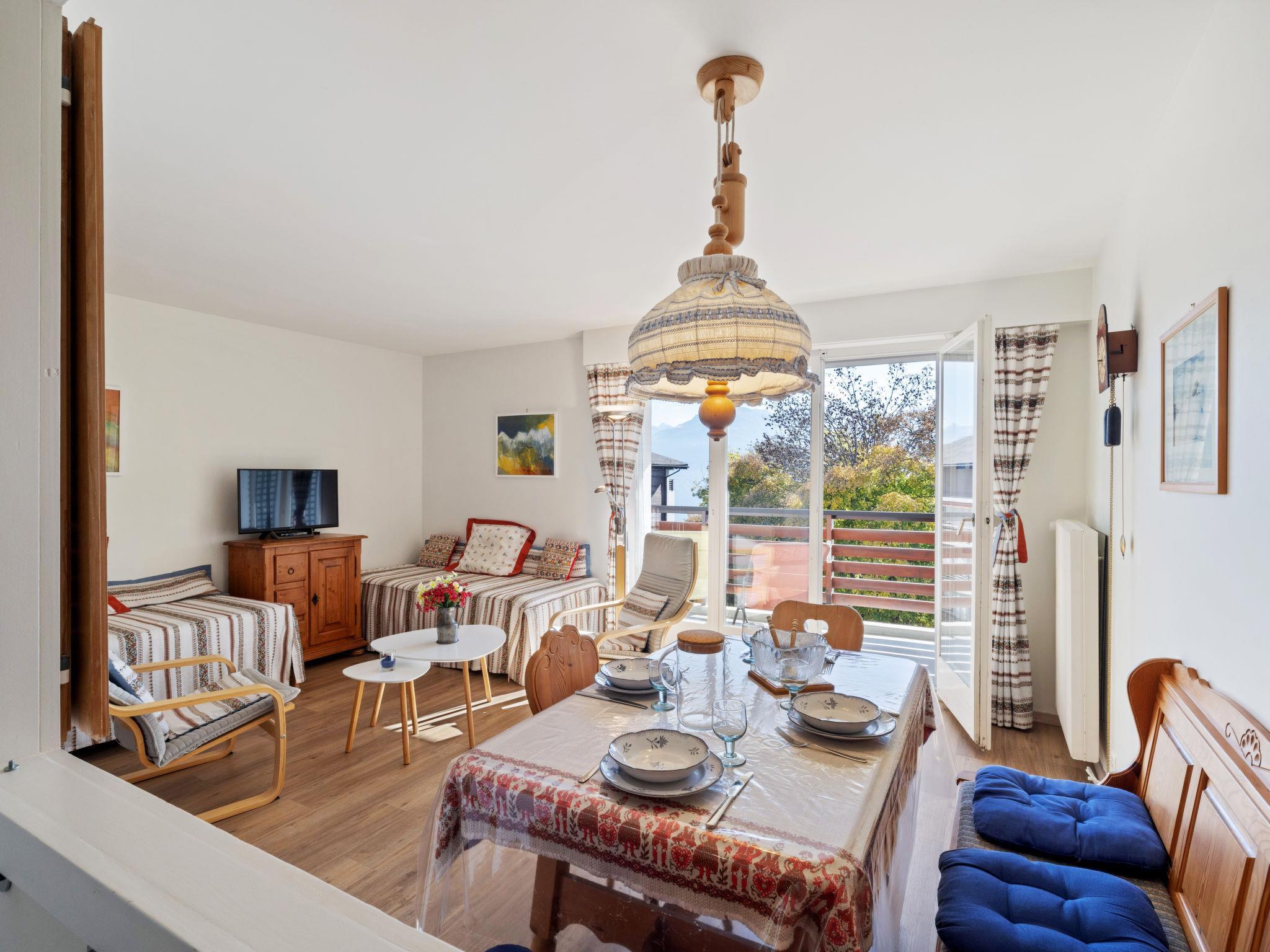 "Armorial Ouest 51", 2-Zimmer-Wohnung 60 m2 im 2. Stock, Südlage. Vollständig renoviert im Jahre 2022, modern und geschmackvoll eingerichtet: grosses Wohn-/Esszimmer mit 1 Ausziehbett (2 Pers. 2 x 90 cm, Länge 200 cm), sep. WC und Sat-TV. Ausgang zum Balkon. 1 Zimmer mit 2 Betten (90 cm, Länge 200 cm). Offene Küche (Backofen, Geschirrspüler, 4 Glaskeramikplatten, Toaster, Wasserkocher, elektrische Kaffeemaschine, Kapseln für die Kaffeemaschine (Nespresso) extra, Racletteofen, Kombinationsmikrowelle, Fondue Set (Käse)). Dusche. Balkon, Südlage. Balkonmöbel, Liegestühle (2). Schöne Sicht auf die Berge und die Landschaft. Zur Verfügung: Bügeleisen, Haartrockner. Internet (WLAN, extra). Bitte beachten: Nichtraucher-Unterkunft. TV nur FR, DE.