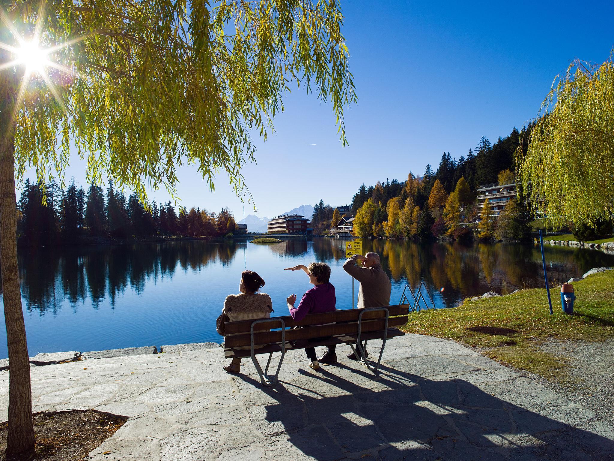 Residenz "Armorial Est / Ouest", auf 5 Stockwerken. Im Ortsteil Combaz, 1.5 km vom Zentrum von Montana, ruhige, sonnige Lage, verkehrsberuhigte Zone, 2.1 km vom See, 1.2 km vom Skigebiet, Richtung Süden. In der Anlage: Tischtennis, Fahrstuhl, Skiraum, Zentralheizung, Waschmaschine, Wäschetrockner (zur Mitbenutzung, extra). Parkplatz (beschränkte Anzahl) beim Haus. Einkaufsgeschäft 1.5 km, Supermarkt 1.5 km, Restaurant 1.5 km, Bäckerei 750 m, Bushaltestelle "Comba" 300 m, Bahnstation "Funiculaire Montana Gare" 1.1 km, Badesee "Moubra" 2.5 km. Golfplatz (18 Loch) 3.5 km, Tennis 2.5 km, Sportzentrum 2.5 km, Skisportanlagen 1.2 km, Langlaufloipe 2.5 km, Eisfeld 1.9 km. Bekannte Seen in der Umgebung sind gut erreichbar: Grenon 2.1 km, Etang Long 3.6 km. Bitte beachten: Gratis Skibus. Weitere Unterkünfte sind buchbar.