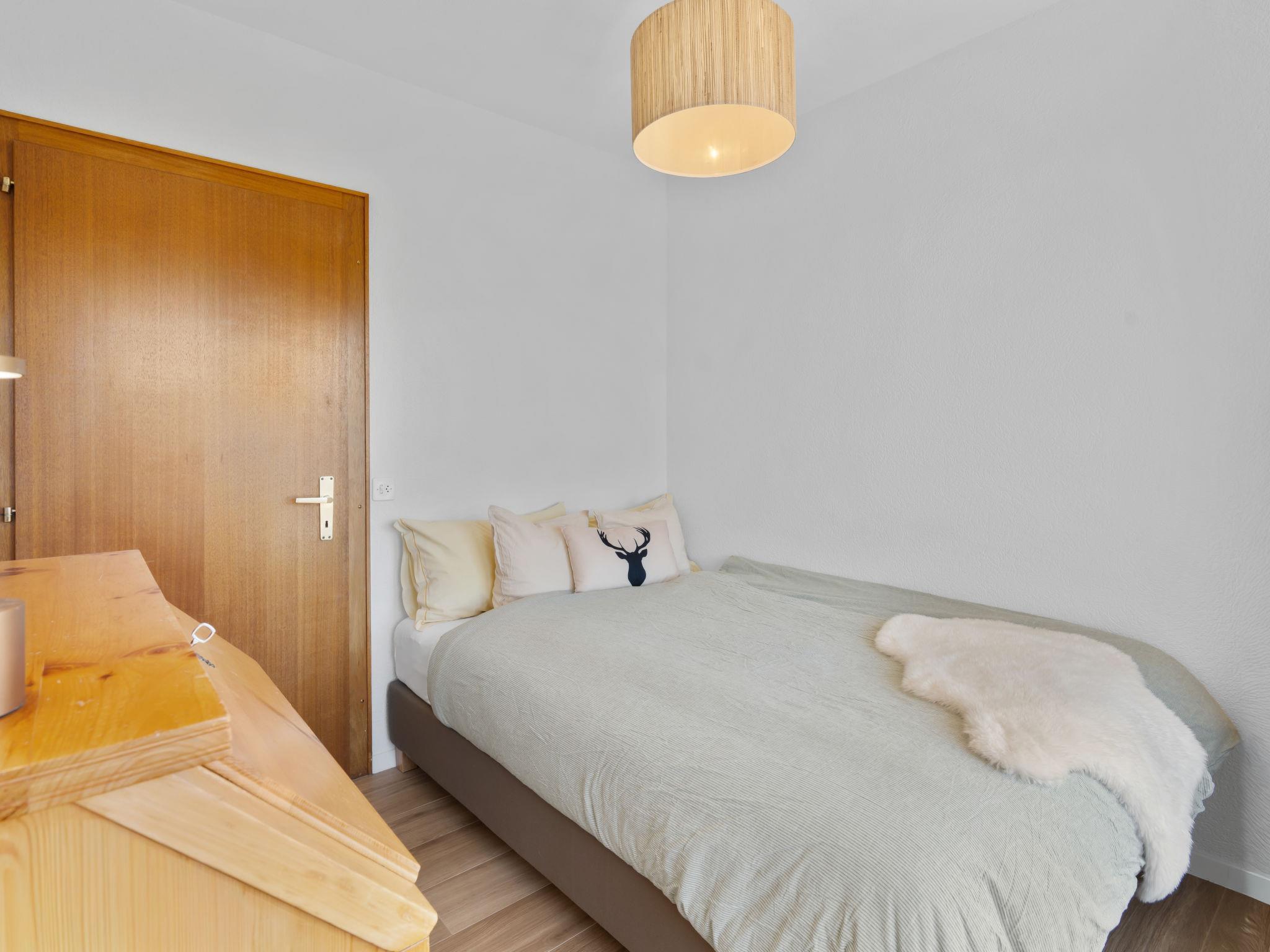 "La Forêt ouest C120", 3-Zimmer-Wohnung 53 m2 im 3. Stock. Hell, renoviert im Jahre 2025, komfortabel und gemütlich eingerichtet: Wohn-/Esszimmer mit sep. WC und Kabel-TV. Ausgang zum Balkon. 1 Zimmer mit 1 franz. Bett (140 cm, Länge 200 cm). Ausgang zum Balkon. 1 Zimmer mit 1 franz. Bett (160 cm, Länge 200 cm). Ausgang zum Balkon. Kleine, offene Küche (Backofen, Geschirrspüler, 4 Induktionskochplatten, Toaster, Wasserkocher, Tiefkühler, elektrische Kaffeemaschine, Kapseln für die Kaffeemaschine (Nespresso) extra, Racletteofen, Fondue Set (Chinoise, Käse)). Dusche/Bidet/WC. 2 Balkone, Südlage. Balkonmöbel. Sehr schöne Sicht auf die Berge, die Landschaft und die Ortschaft. Zur Verfügung: Waschmaschine, Bügeleisen, Haartrockner. Internet (WLAN, gratis). Bitte beachten: Nichtraucher-Unterkunft.
