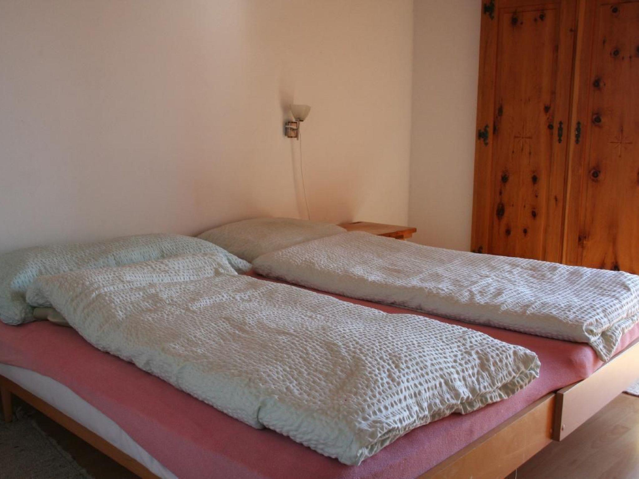 1. Stock: ein Schlafzimmer südseitig mit Doppelbett, Ausgang zum Balkon, 1 Schlafzimmer südseitig mit Doppelbett und Kajütenbett, Ausgang zum Balkon, 1 Schlafzimmer nordseitig mit zwei Betten. Badezimmer mit Dusche, WC. Spiegelschrank, Lavabo und Haarfön. Dachschräge, überall Stehhöhe.