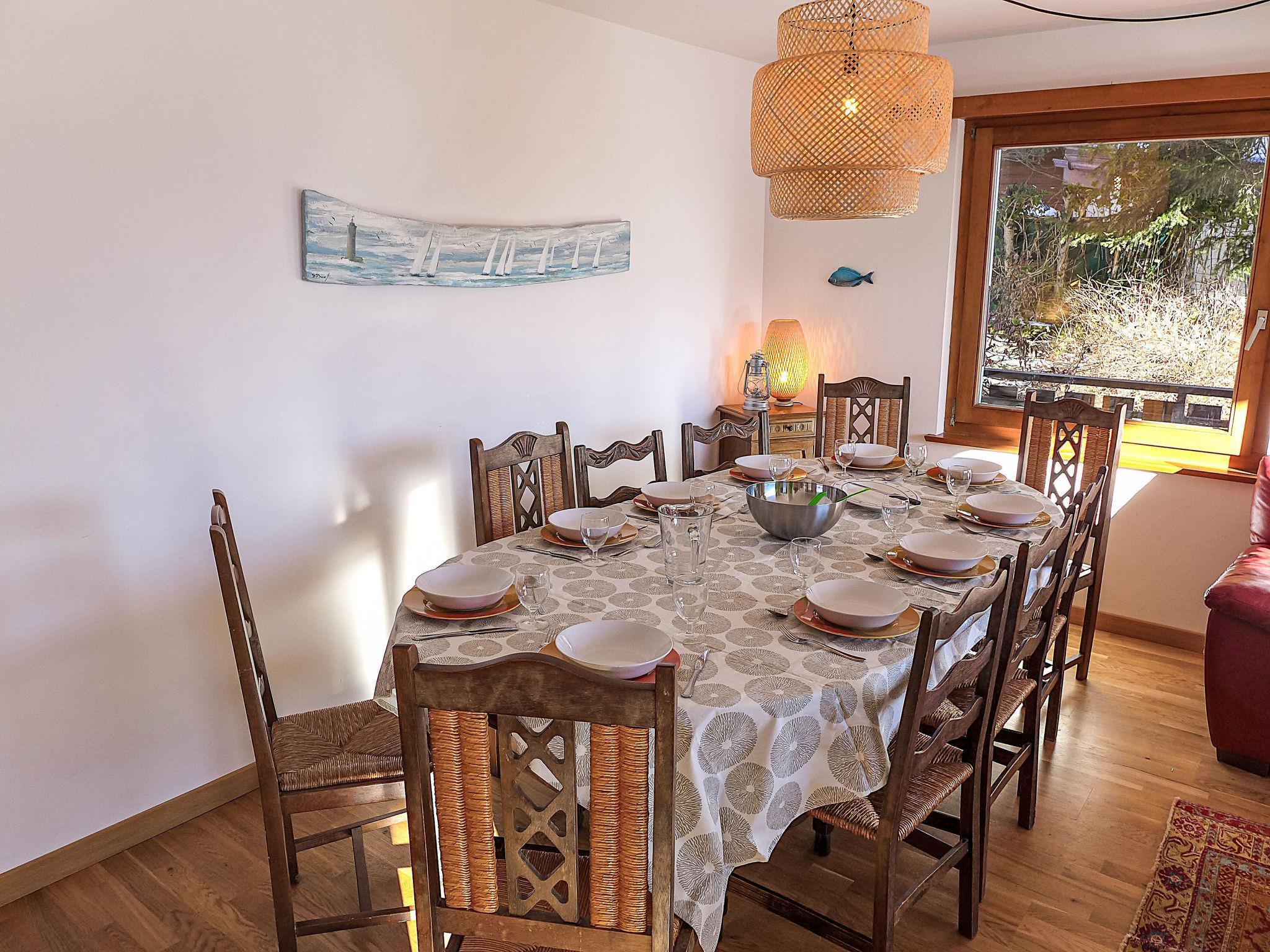 "Chalet Aglaia", 5-Zimmer-Chalet 220 m2 auf 3 Stockwerken, Südlage. Objekt geeignet für 8 Erwachsene + 2 Kinder. Geräumig, komfortabel und schön eingerichtet: Wohn-/Esszimmer mit offenem Kamin, Kabel-TV und Flachbildschirm. Ausgang zum Balkon. Küche (Backofen, Geschirrspüler, 4 Glaskeramikplatten, Toaster, Wasserkocher, Mikrowelle, Tiefkühler, elektrische Kaffeemaschine, Racletteofen, Fondue Set (Käse)). Ausgang zur Terrasse. Unteres Geschoss: 1 Zimmer mit 2 Betten (90 cm, Länge 200 cm), sep. WC. Obergeschoss: 1 abgeschrägtes grosses Zimmer mit 2 Betten (80 cm, Länge 200 cm), 1 franz. Bett (160 cm, Länge 200 cm). 1 Zimmer mit 1 franz. Bett (160 cm, Länge 200 cm). 1 abgeschrägtes Zimmer mit 1 franz. Bett (140 cm, Länge 200 cm). Bad/WC, Dusche/WC. Grosser Balkon, Südlage und Ostlage, kleine Terrasse, Nordlage und Ostlage. Balkonmöbel, Gartengrill (mobil), Liegestühle (2). Sehr schöne Sicht auf die Berge, das Tal und die Landschaft. Zur Verfügung: Waschmaschine, Bügeleisen, Kinderhochstuhl, Babybett bis 3 Jahre, Haartrockner. Internet (WLAN, gratis). Garage (2 Autos) beim Haus, Höhe 190 cm, Breite 230 cm. Bitte beachten: geeignet für Familien. Nichtraucher-Haus. Babybett ohne Bettwäsche und ohne Decke. Nach 22 Uhr ist es verboten, Lärm zu machen, da die Umgebung sehr lärmempfindlich ist.