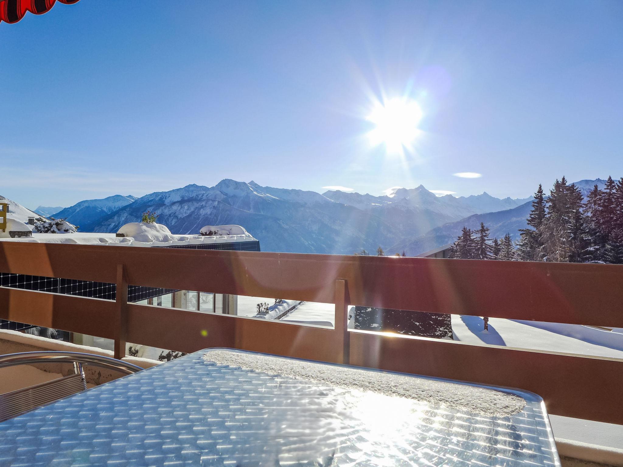 Schwimmbad (ca. 26°) und Sprudelbad (ab 16 Jahre alt) im November geschlossen. Das Gebäude wurde auf einem geneigten Grundstück erbaut. Die Stockwerke werden als Ebenen betrachtet, die ab Residenzboden nummeriert sind. Bei starkem Schneefall, ist es gemäss den Anweisungen des Administrators untersagt, die Terrassen vom Schnee zu räumen. Terrassenhaus "Terrasse des Alpes". Im Ortsteil Marigny, 400 m vom Zentrum von Montana, sonnige Lage, 1.5 km vom See, 1.5 km vom Skigebiet, Richtung Südwesten. Zur Mitbenutzung: Hallenbad beheizt (12 x 5 m, saisonale Verfügbarkeit: 01.Jan. - 31.Okt. und 16.Dez. - 31.Dez. Öffnungszeiten Schwimmbad: 08:00-20:00). Sprudelbad, Terrasse. Im Hause: Aufenthaltsraum, Fahrstuhl, Skiraum, Zentralheizung, Waschmaschine, Wäschetrockner (zur Mitbenutzung, extra). Einkaufsgeschäft, Supermarkt, Restaurant, Bar, Café 400 m, Zentrum zu Fuss in 5 Minuten erreichbar, Bushaltestelle "Montana Poste" 300 m, Bahnstation "Funiculaire Montana Gare" 450 m, Badesee "Moubra" 1.5 km. Golfplatz (18 Loch) 3.8 km, Skisportanlagen 1.5 km. Bitte beachten: Gratis Skibus.
