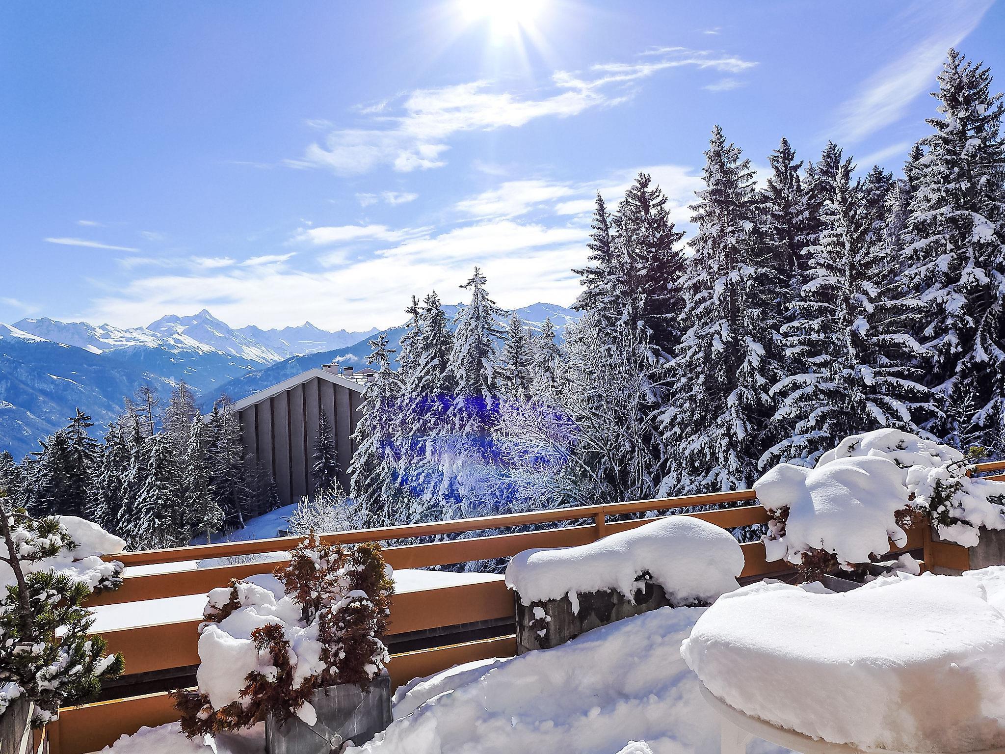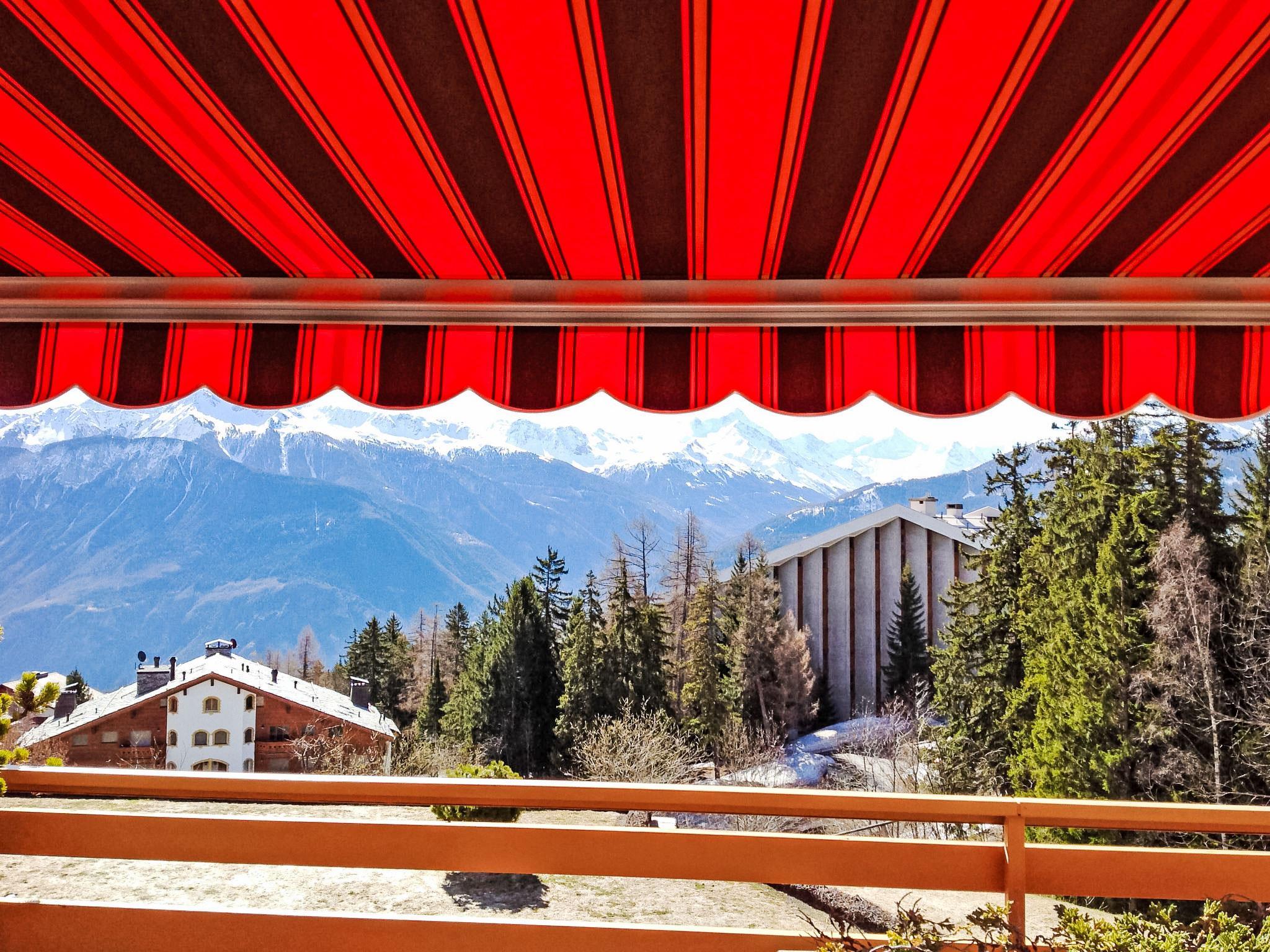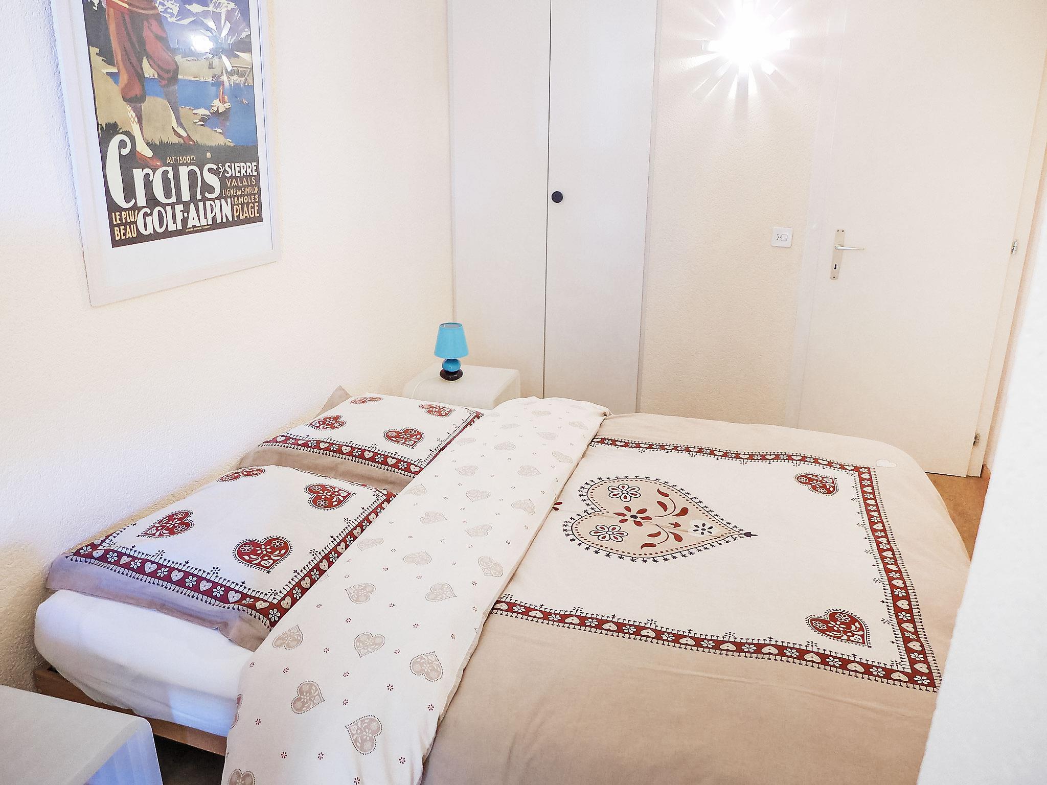 Schwimmbad (ca. 26°) und Sprudelbad (ab 16 Jahre alt) im November geschlossen. Das Gebäude wurde auf einem geneigten Grundstück erbaut. Die Stockwerke werden als Ebenen betrachtet, die ab Residenzboden nummeriert sind. Bei starkem Schneefall, ist es gemäss den Anweisungen des Administrators untersagt, die Terrassen vom Schnee zu räumen. Terrassenhaus "Terrasse des Alpes". Im Ortsteil Marigny, 400 m vom Zentrum von Montana, sonnige Lage, 1.5 km vom See, 1.5 km vom Skigebiet, Richtung Südwesten. Zur Mitbenutzung: Hallenbad beheizt (12 x 5 m, saisonale Verfügbarkeit: 01.Jan. - 31.Okt. und 16.Dez. - 31.Dez. Öffnungszeiten Schwimmbad: 08:00-20:00). Sprudelbad, Terrasse. Im Hause: Aufenthaltsraum, Fahrstuhl, Skiraum, Zentralheizung, Waschmaschine, Wäschetrockner (zur Mitbenutzung, extra). Einkaufsgeschäft, Supermarkt, Restaurant, Bar, Café 400 m, Zentrum zu Fuss in 5 Minuten erreichbar, Bushaltestelle "Montana Poste" 300 m, Bahnstation "Funiculaire Montana Gare" 450 m, Badesee "Moubra" 1.5 km. Golfplatz (18 Loch) 3.8 km, Skisportanlagen 1.5 km. Bitte beachten: Gratis Skibus.