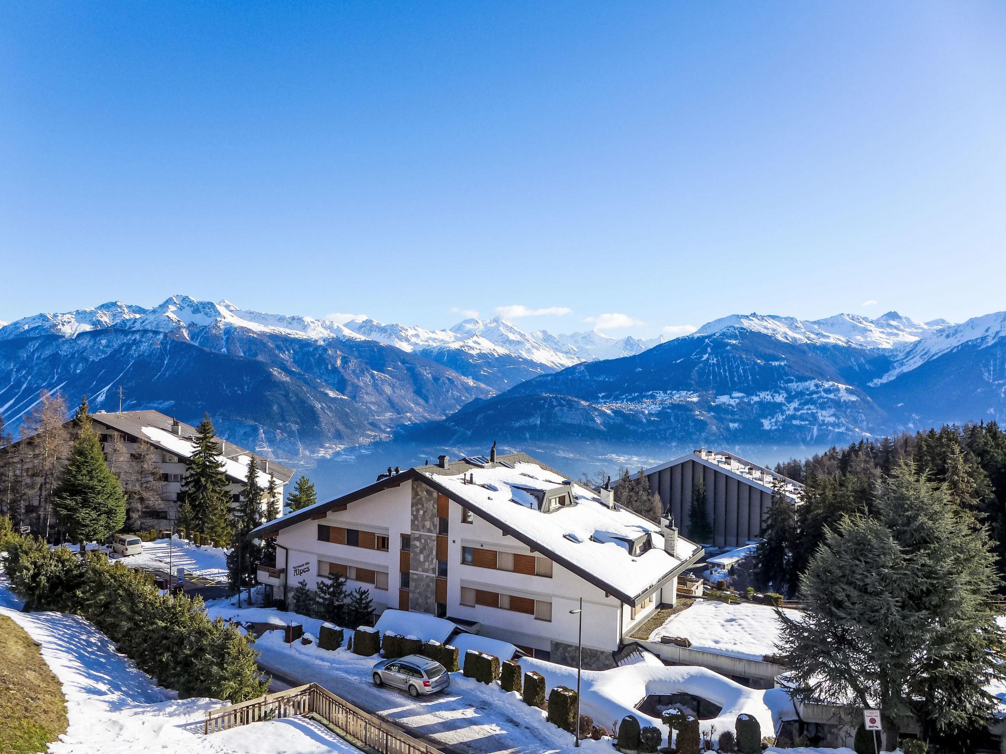 Mehrfamilienhaus "Grand Large A/B". Im Ort, 200 m vom Zentrum von Montana, sonnige Lage, 1.1 km vom See, Richtung Süden. Im Hause: Fahrstuhl, Skiraum, Zentralheizung, Waschmaschine, Wäschetrockner (zur Mitbenutzung, extra), Trockenraum. Parkplatz (beschränkte Anzahl). Einkaufsgeschäft 200 m, Supermarkt 240 m, Restaurant, Bäckerei 300 m, Zentrum zu Fuss in 2 Minuten erreichbar, Bushaltestelle "Montana Poste" 100 m, Bahnstation "Funiculaire Montana Gare" 210 m, Badesee "Moubra" 1.7 km, See Grenon 1.1 km. Golfplatz (18 Loch) 2.2 km, Skisportanlagen 1 km. Bekannte Seen in der Umgebung sind gut erreichbar: Lac de la Moubra 1.7 km, Etang Long 2.2 km. Bitte beachten: Gratis Skibus. Die Stockwerke müssen als Ebenen betrachtet werden (ab Residenzboden gerechnet).