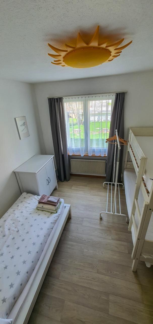 Den Skitag gemütlich in der warmen Stube ausklingen lassen und am Cheminéefeuer erholen. Die Wohnung ist gemütlich eingerichtet und kinderfreundlich. Die Unterkunft kann selbstständig betreten werden, der Schlüssel ist in einem Schlüsselsafe deponiert. Der Code wird vor Anreise bekannt gegeben. Bei der Abreise bitte den Schlüssel wieder zurücklegen. Haustiere sind erlaubt, eine kostenpflichtige Waschmaschine kann in der gemeinsamen Waschküche benutzt werden. Die Wohnung hat 3.5 Zimmer, ein Bad mit WC/Dusche und ein separates WC. Ein Schlafzimmer mit Doppelbett, ein Schlafzimmer mit 3 Betten für Kinder oder auch für Erwachsene geeignet und ein Schlafsofa im Wohnzimmer.