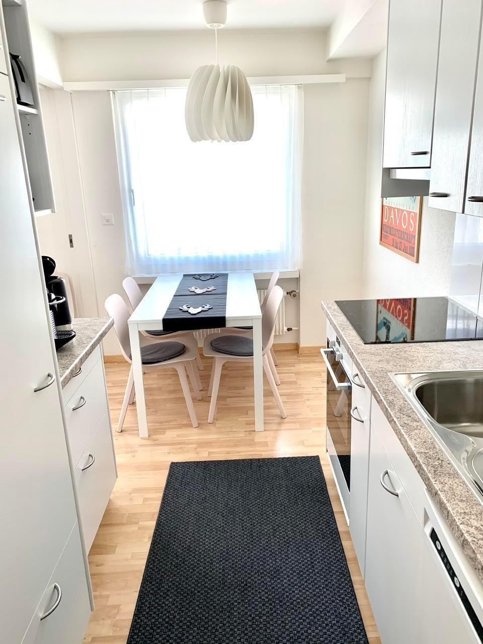 Sehr zentral, neben Jakobshorn Bahn, Bolgen, Nähe Skischule, Skivermietung, Bushaltestelle, grosser Supermarkt, Restaurants, Bars, Cafés, Landwasser. Die Wohnung ist komplett eingerichtet und ausgestattet mit allem was sie zum Wohnen und Kochen brauchen. Gutes WIFI (wenn sie arbeiten müssen oder alle Kinder am Handy gleichzeitig sind). Sehr grosser SMART TV mit Netflix und Apps. Im Schlafzimmer ist ein sehr bequemes Doppelbett (200 cm x 180 cm) mit hochwertigen Bettsachen, im Wohnzimmer Wandschrankbetten (richtige Matratzen), und ein Sofabett (auch super bequem mit einer richtigen Matratze). Auch für 5 Erwachsene sehr bequem. Ein Parkplatz direkt vor dem Haus ist für sie reserviert. Skiraum plus Waschküche.