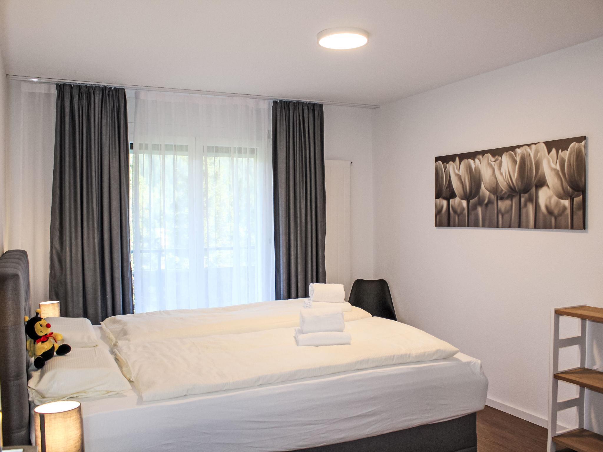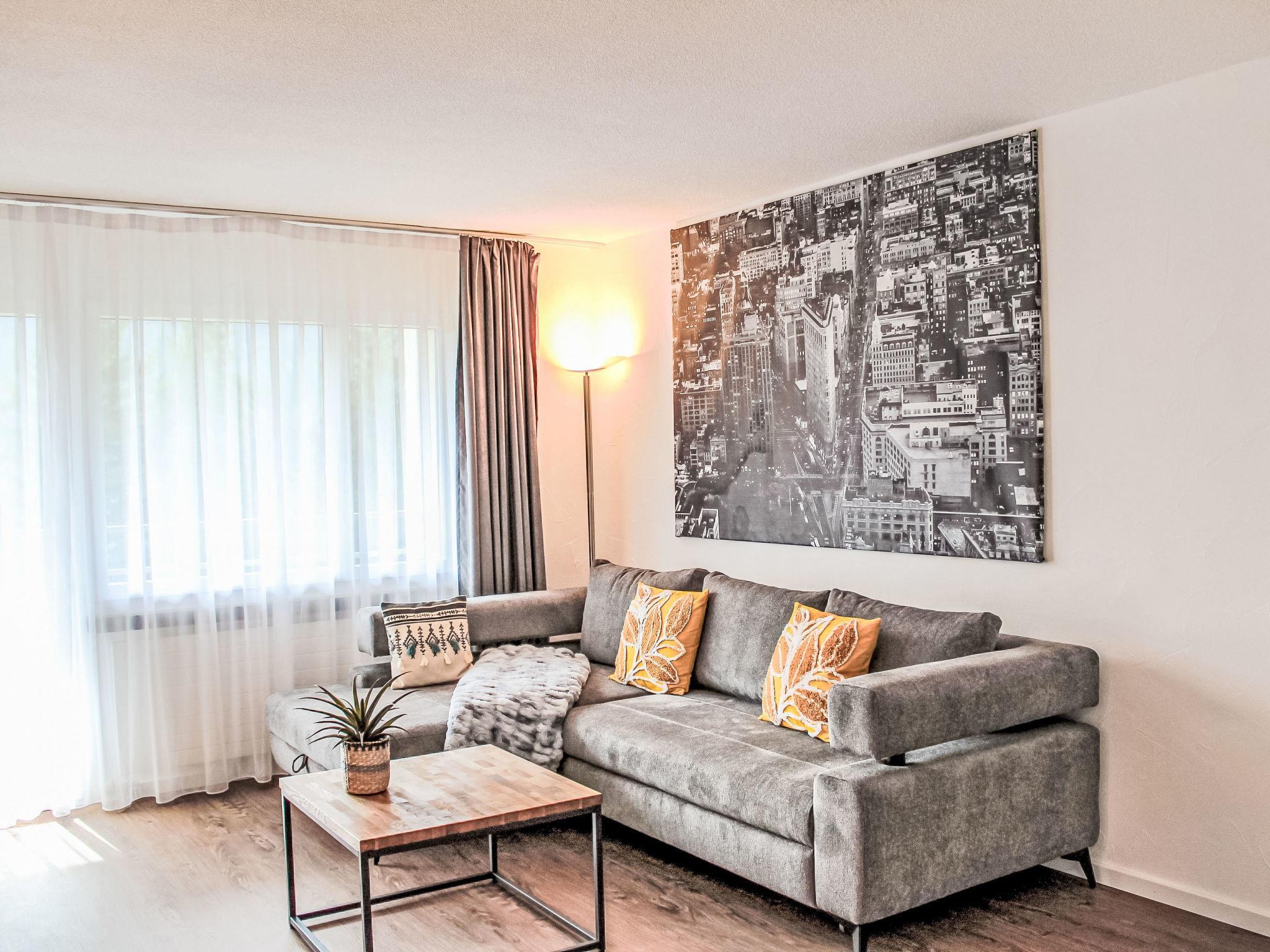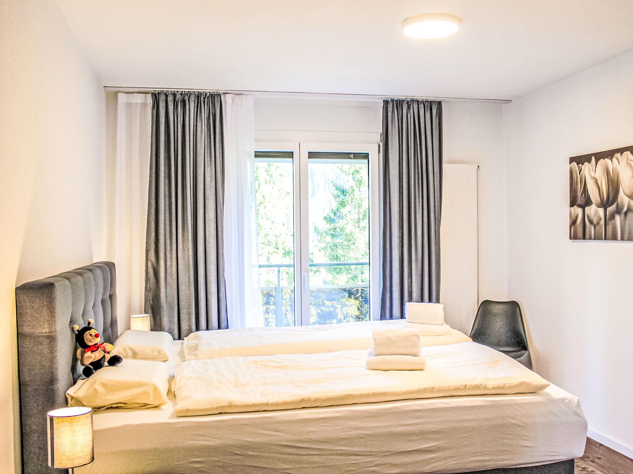 "Allod Park Haus C 502", 2-Zimmer-Wohnung 55 m2 im 5. Stock, Südostlage. Objekt geeignet für 2 Erwachsene + 1 Kind. Geräumig und hell, vollständig renoviert im Jahre 2025, sehr schön und geschmackvoll eingerichtet: offenes Wohn-/Esszimmer mit Esstisch und Kabel-TV (Flachbildschirm). Ausgang zum Balkon. 1 Zimmer mit 1 Doppelbett (2 x 90 cm). Ausgang zum Balkon, Richtung Südwesten. Küche (Backofen, Geschirrspüler, 4 Glaskeramikplatten, elektrische Kaffeemaschine, Kapseln für die Kaffeemaschine (Nespresso) extra). Dusche/WC, Doppelwaschbecken. Ölheizung. Parkettboden. Grosser Balkon, Südwestlage. Balkonmöbel, Elektrogrill. Sehr schöne Panoramasicht auf die Berge, die Landschaft und die Ortschaft. Bitte beachten: Nichtraucher-Unterkunft. 40623