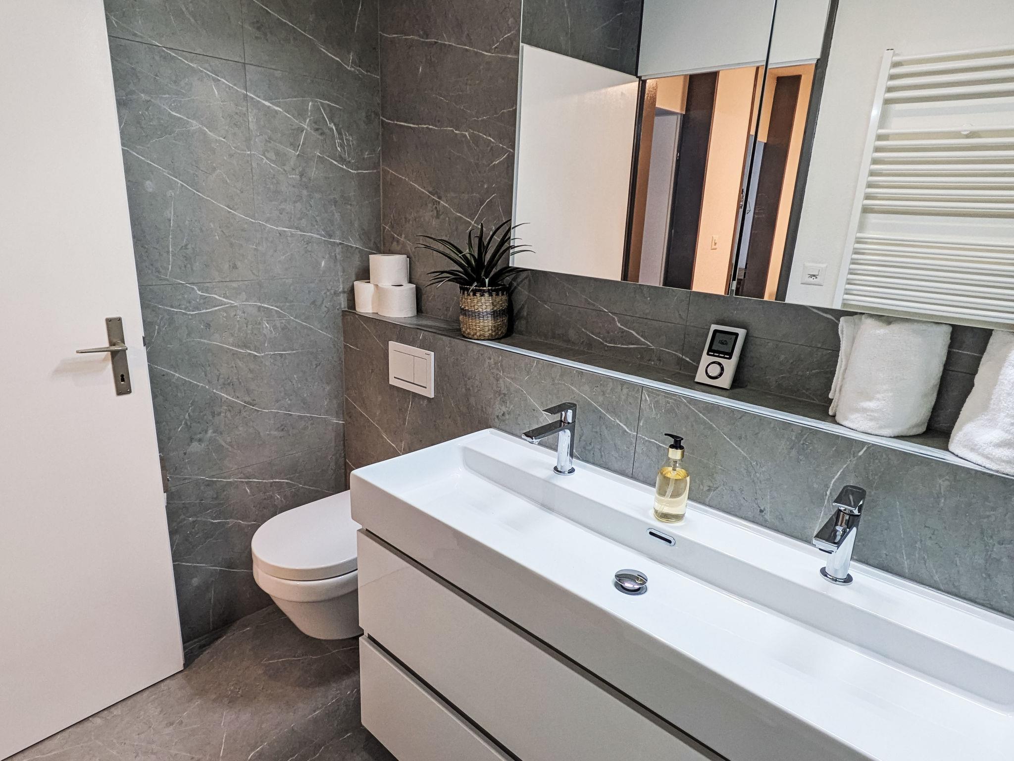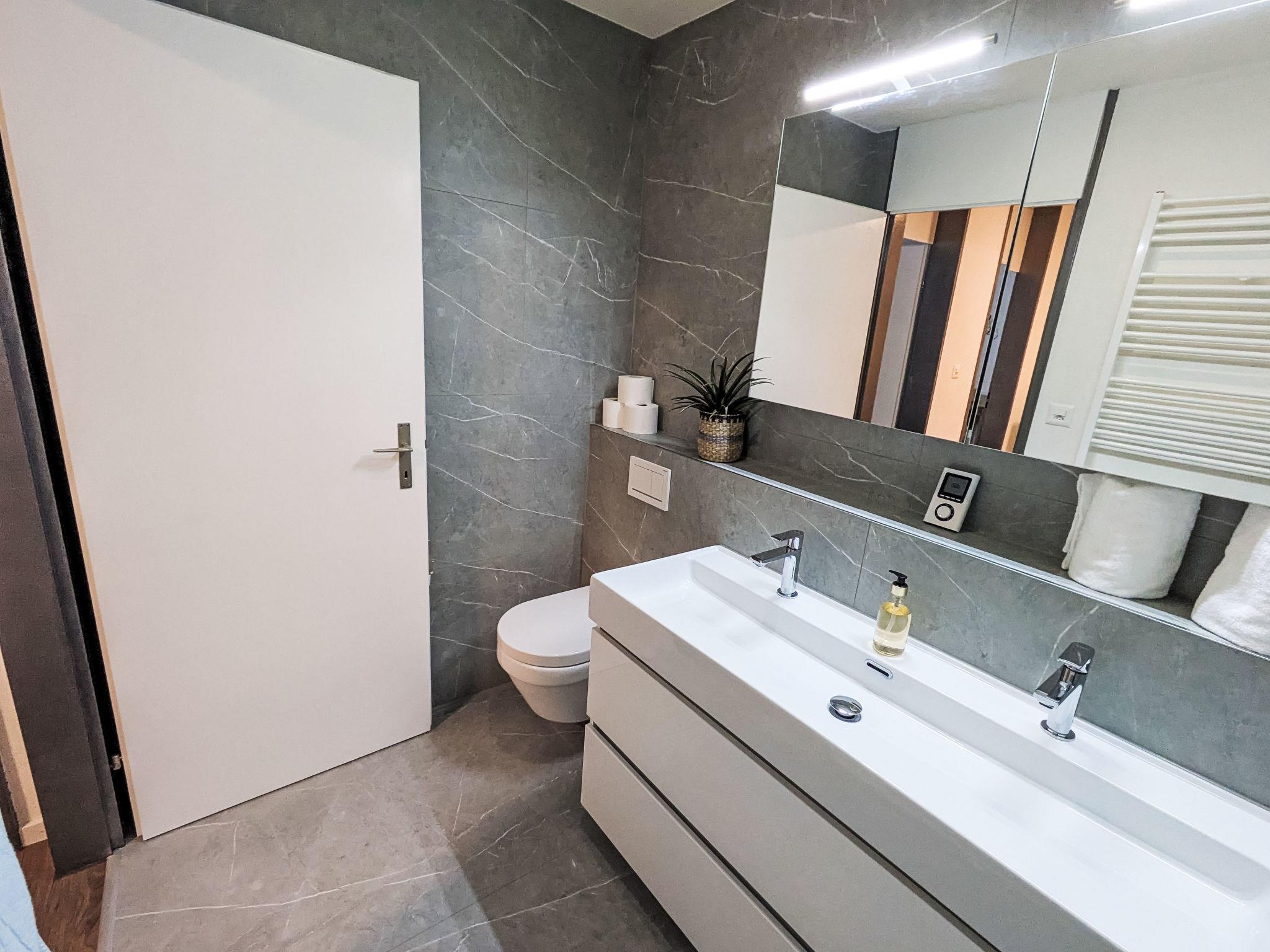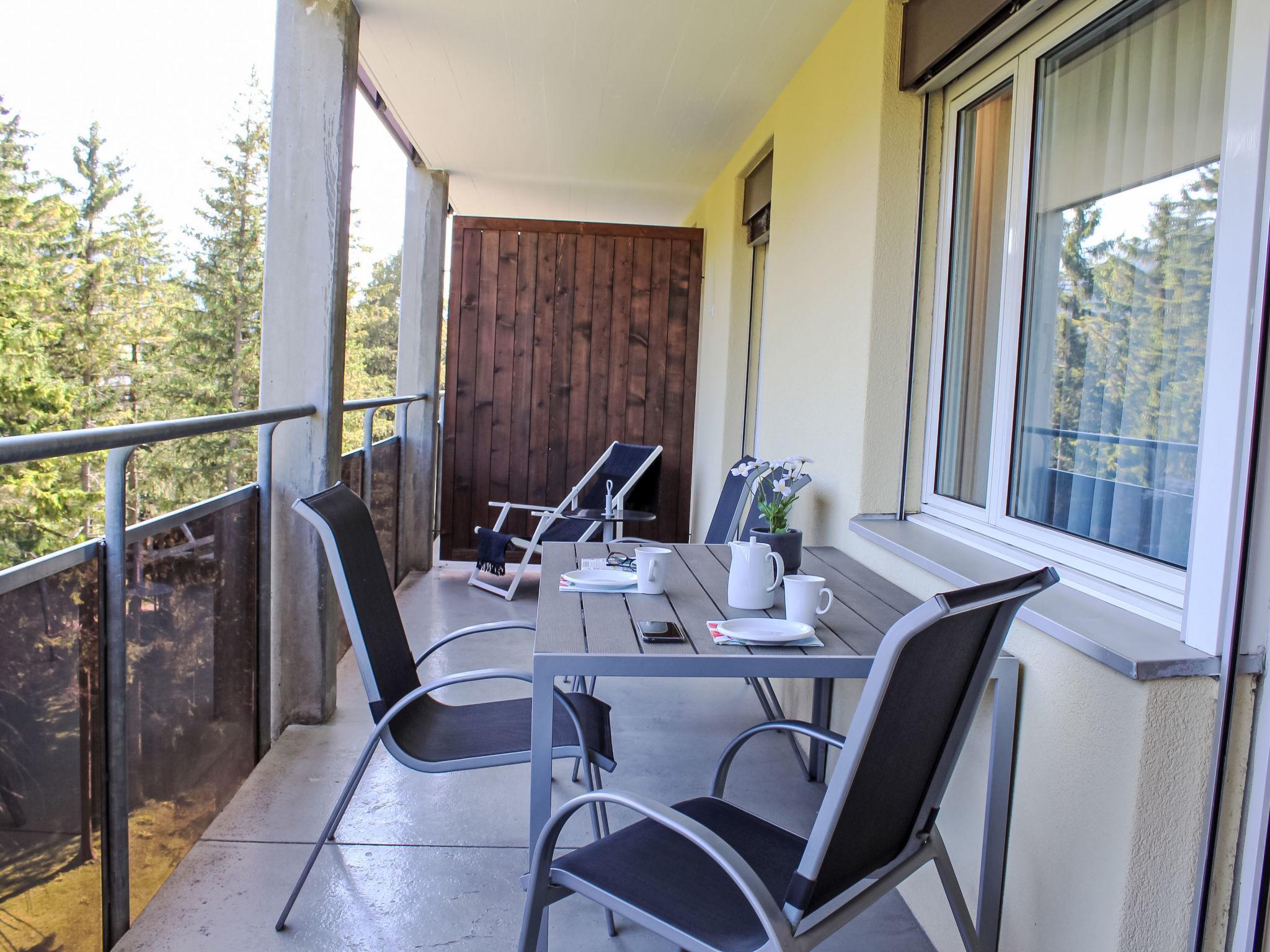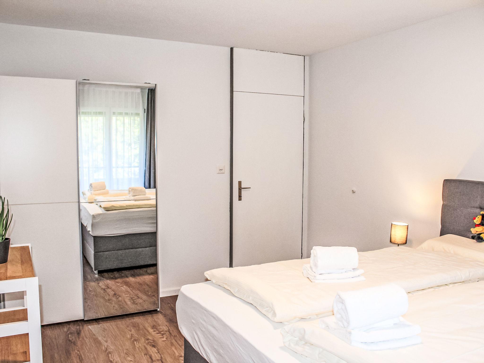 "Allod Park Haus C 502", 2-Zimmer-Wohnung 55 m2 im 5. Stock, Südostlage. Objekt geeignet für 2 Erwachsene + 1 Kind. Geräumig und hell, vollständig renoviert im Jahre 2025, sehr schön und geschmackvoll eingerichtet: offenes Wohn-/Esszimmer mit Esstisch und Kabel-TV (Flachbildschirm). Ausgang zum Balkon. 1 Zimmer mit 1 Doppelbett (2 x 90 cm). Ausgang zum Balkon, Richtung Südwesten. Küche (Backofen, Geschirrspüler, 4 Glaskeramikplatten, elektrische Kaffeemaschine, Kapseln für die Kaffeemaschine (Nespresso) extra). Dusche/WC, Doppelwaschbecken. Ölheizung. Parkettboden. Grosser Balkon, Südwestlage. Balkonmöbel, Elektrogrill. Sehr schöne Panoramasicht auf die Berge, die Landschaft und die Ortschaft. Bitte beachten: Nichtraucher-Unterkunft. 40623