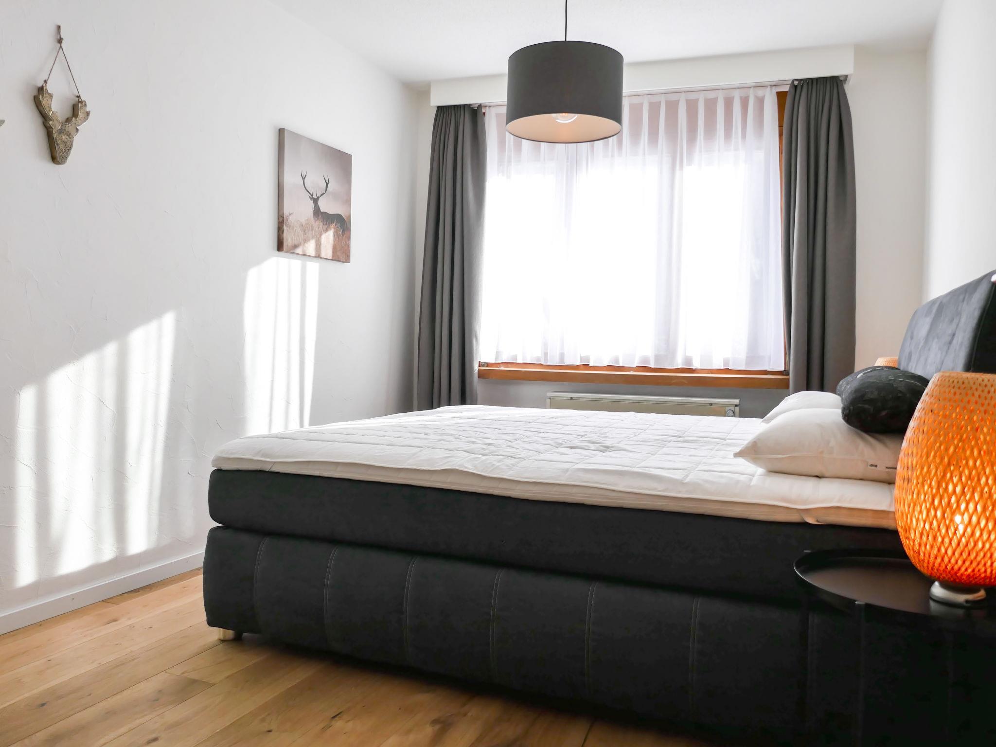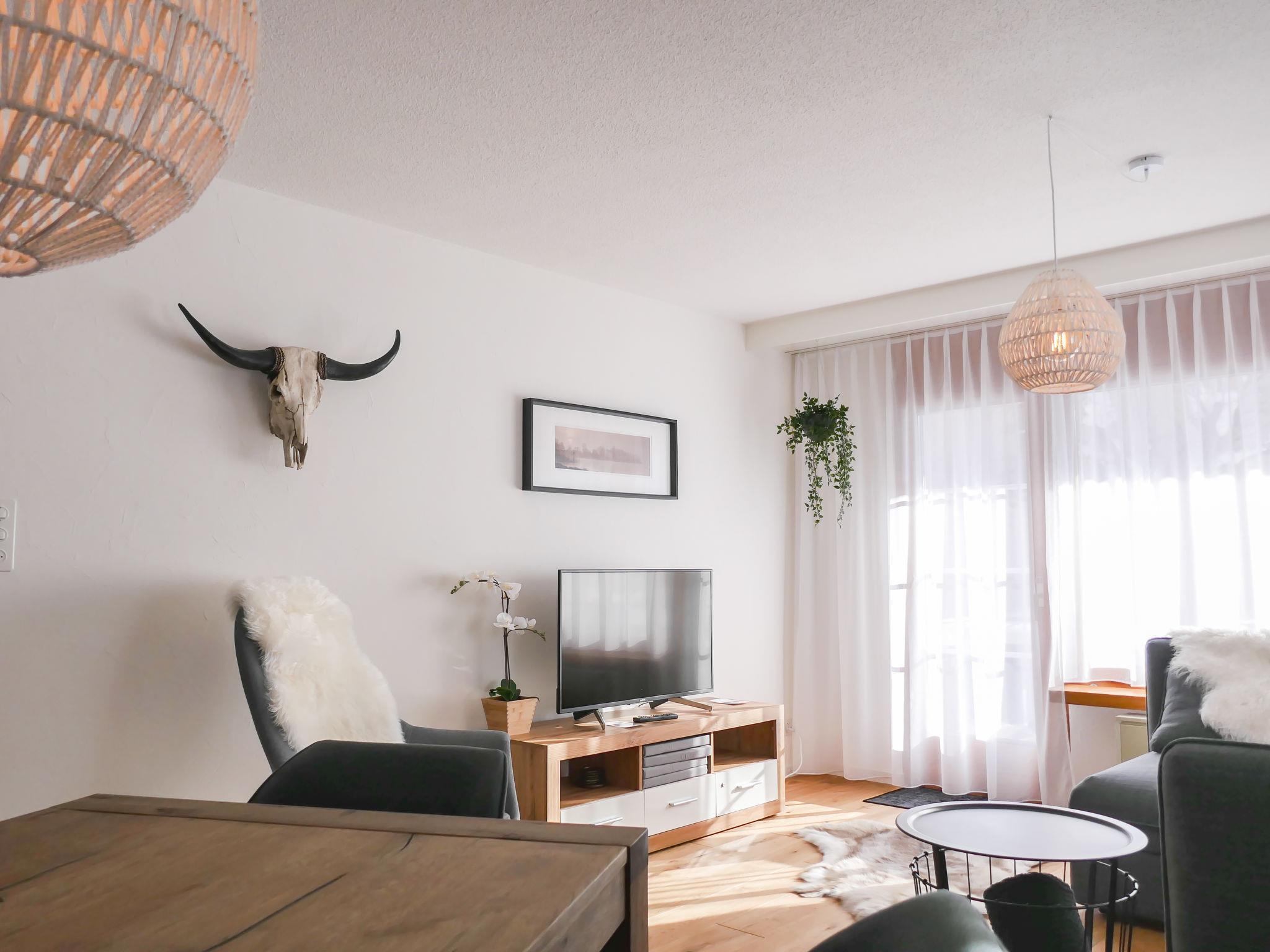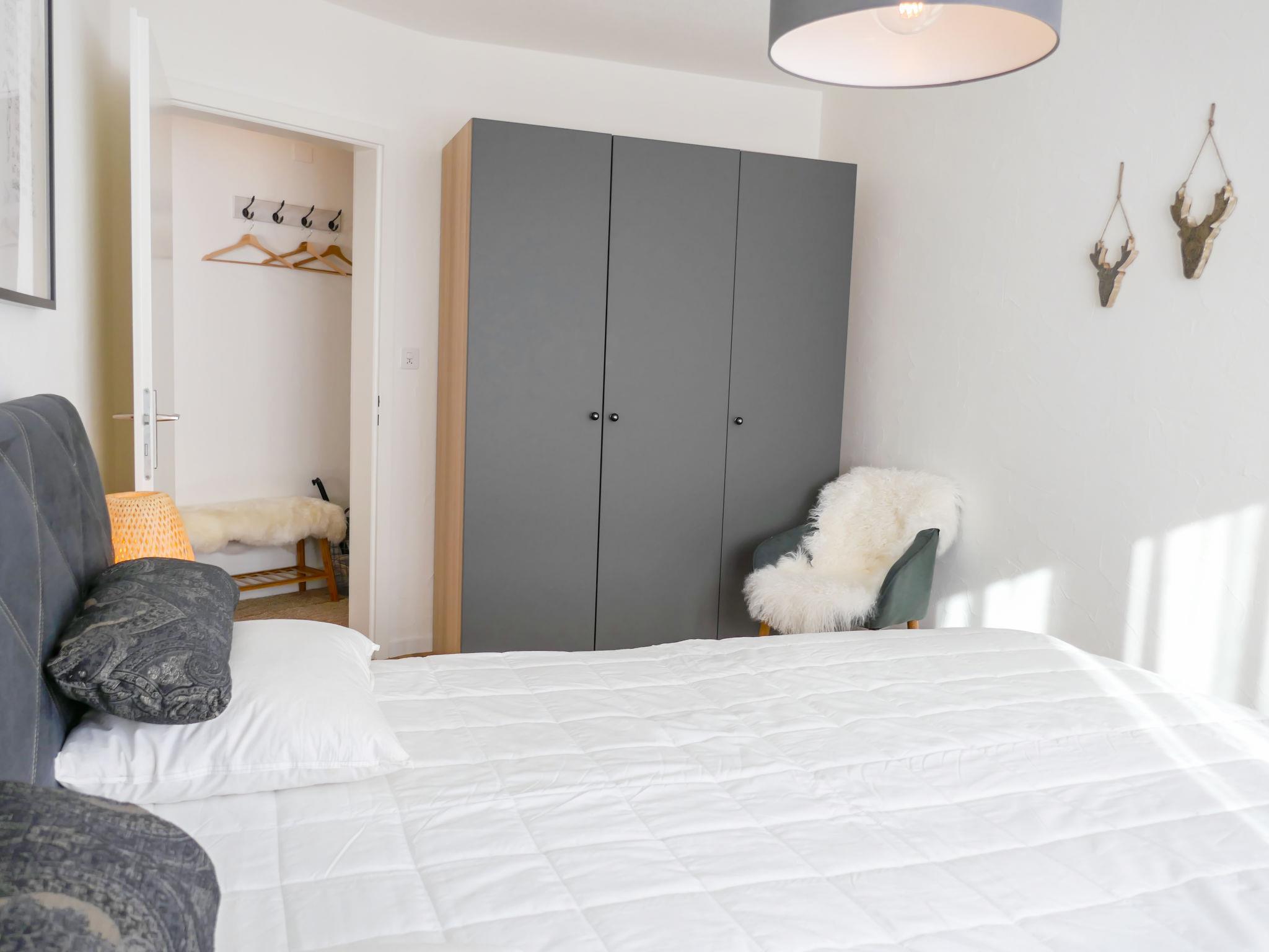"Albertistrasse Apt. 9", 2-Zimmer-Wohnung 64 m2 im 1. Stock, Südlage. Objekt geeignet für 2 Erwachsene + 2 Kinder. Geräumig und hell, vollständig renoviert im Jahre 2018, sehr schön und geschmackvoll eingerichtet: Wohn-/Esszimmer mit 1 Diwanbett (140 cm), Esstisch, Sat-TV, Flachbildschirm und E-Heizung. Ausgang zum Balkon, Richtung Süden. 1 Zimmer mit 1 Doppelbett (2 x 90 cm). Küche (Backofen, Geschirrspüler, 4 Glaskeramikplatten, Tiefkühler, elektrische Kaffeemaschine, Kapseln für die Kaffeemaschine (Nespresso) extra, Fondue Set (Chinoise, Käse)). Bad/Dusche/WC. E-Heizung, Fussbodenheizung. Parkettboden. Balkon 8 m2, Südlage. Balkonmöbel. Sehr schöne Sicht auf die Berge, die Landschaft und die Ortschaft. Zur Verfügung: Waschmaschine (extra). Wäschetrockner (extra). Internet (WLAN, gratis). Parkplatz beim Haus. 2.5 Zimmer-Whg. 10302