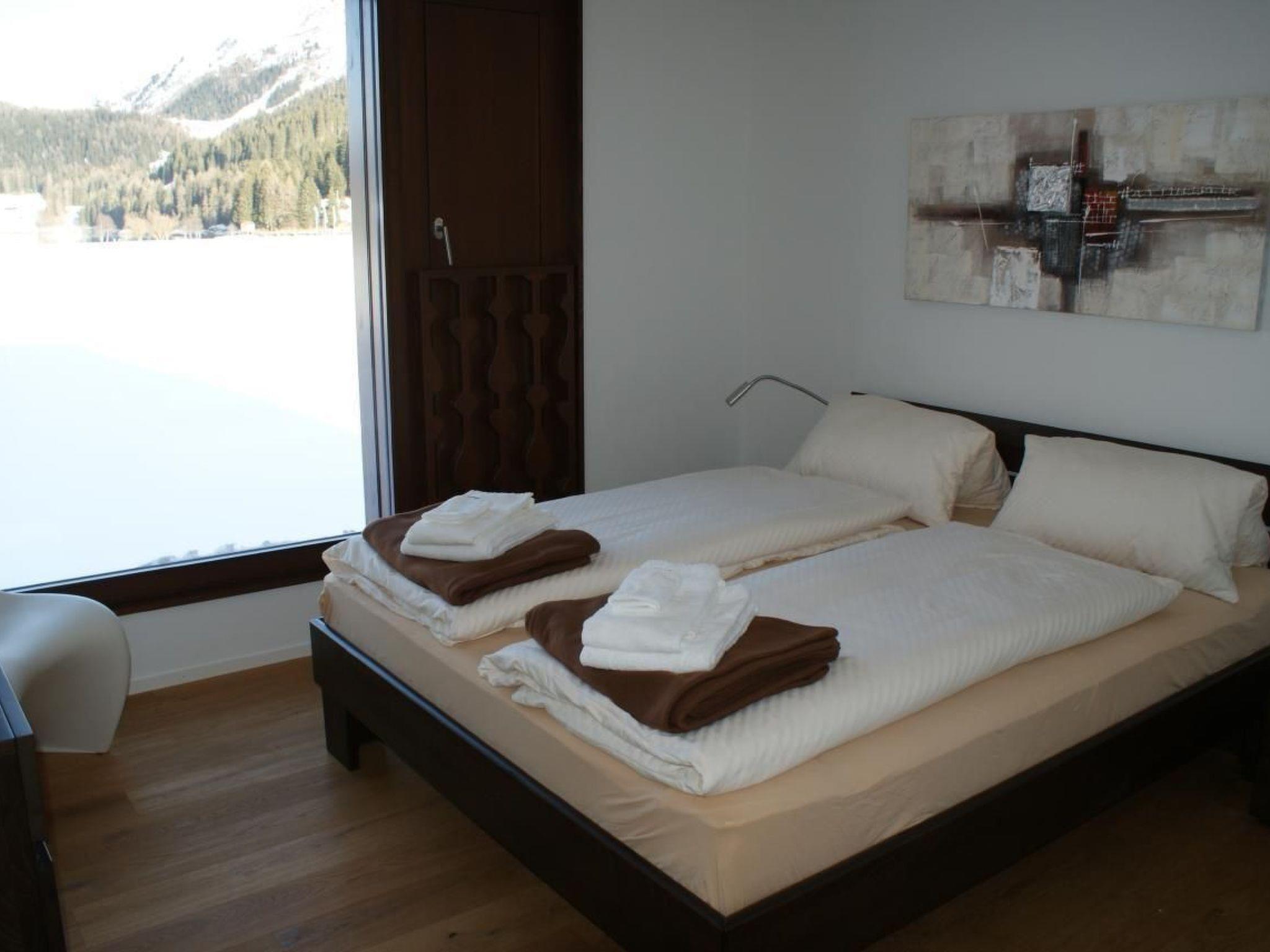 Die Lage mit direkter Sicht und Nähe zum See, sowie die Grösse und Qualität der Wohnung lädt zum geniessen ein. Das offene Wohnzimmer verfügt über einen direkten Zugang zu den 2 Loggias mit einzigartiger Aussicht zum Davosersee und den Davoserbergen. Die Wohnung misst 143 m2.