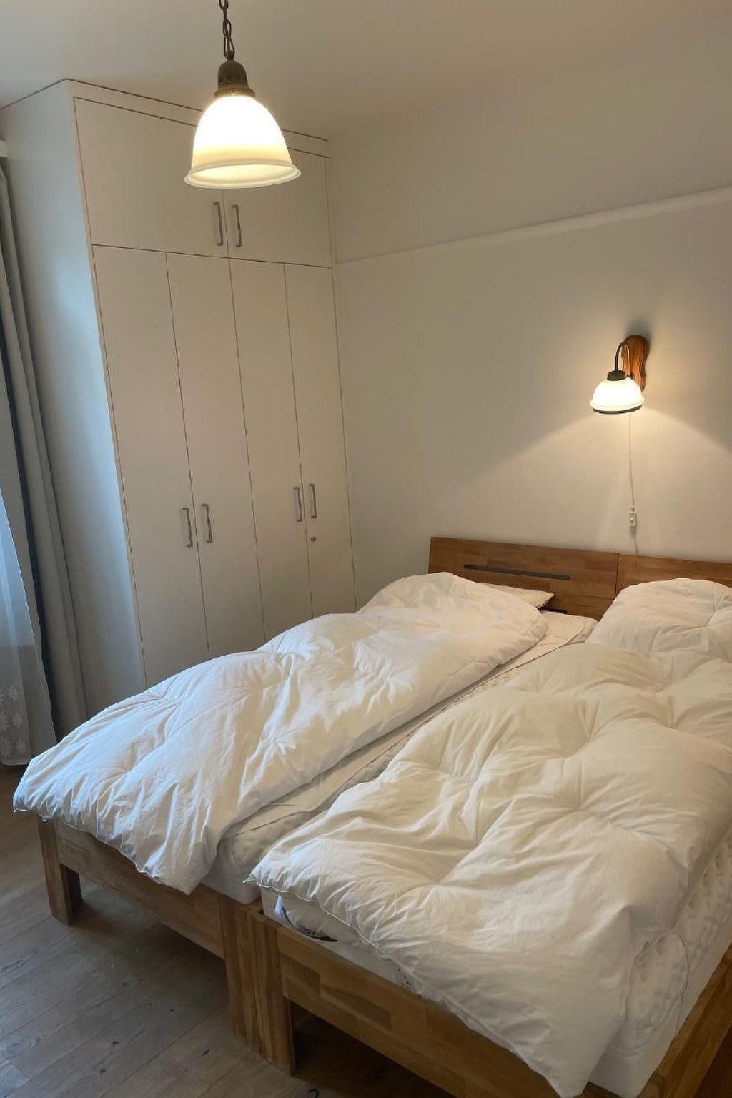 In der Wohnung erwarten Sie drei sorgfältig eingerichtete Schlafzimmer, die alle verdunkelbar sind, sodass Sie nach einem ereignisreichen Tag ungestört ausruhen können. Zwei Badezimmer, jeweils mit Dusche und Badewanne mit Duschvorrichtung, bieten ausreichend Komfort und Privatsphäre für alle Gäste. Die gemeinschaftlich nutzbare Waschmaschine und der Trockner im Gebäude sorgen dafür, dass Sie auch während eines längeren Aufenthalts stets frische Kleidung zur Hand haben. Die Küchenausstattung mit Kaffeemaschine und Spülmaschine erleichtert die Selbstversorgung.