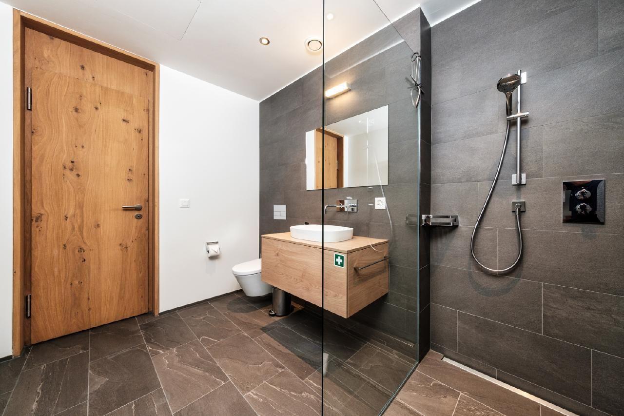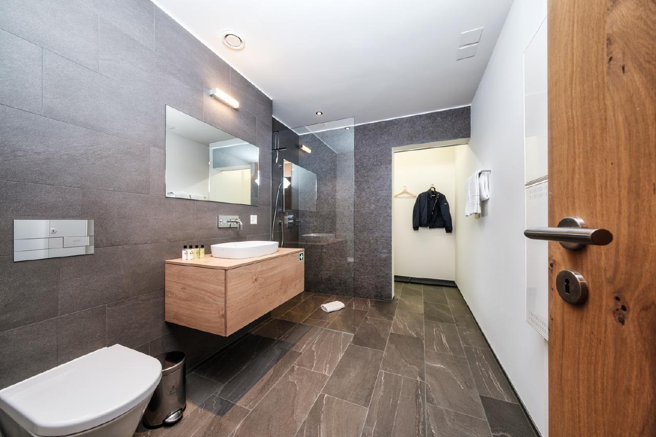 Der Außenbereich mit einer 30 qm großen Terrasse lädt zum Entspannen ein. Mit einem Gartentisch für 6 Personen und zwei Liegebetten können Sie hier die Sonne und den Blick in vollen Zügen genießen. Ein privater Ski- und Velo Raum sowie ein privat Parking in der Tiefgarage runden das luxuriöse Angebot ab und bieten Komfort und Sicherheit für Ihre Ausrüstung und Ihr Fahrzeug.