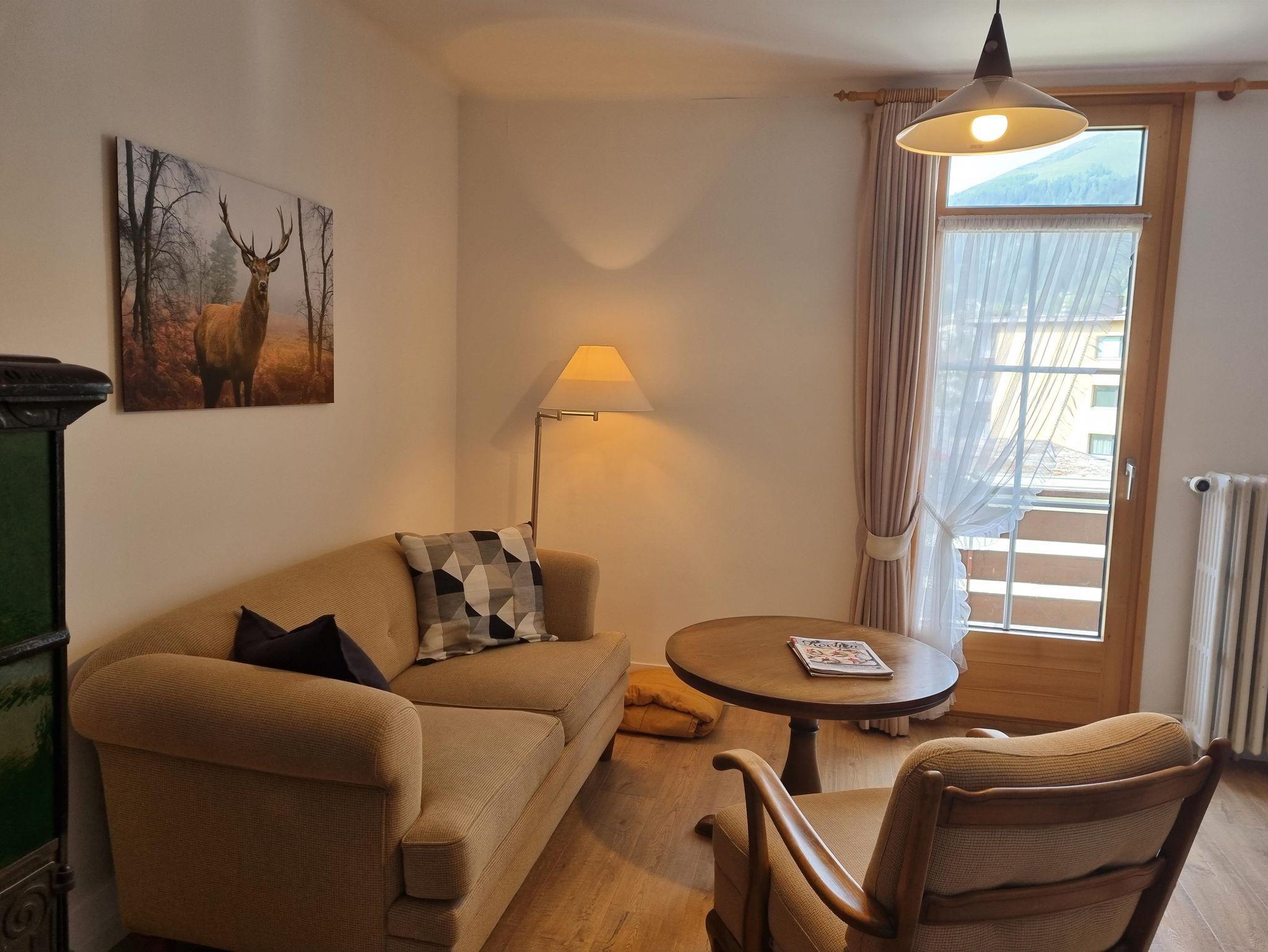 3.5-Zimmerwohnung (66 m2) im 2. Stock; zentrale Lage nahe Eisstadion, Jakobshorn und Hallenbad/Wellness eau-là-là; sehr sonniger Südbalkon mit Tisch und Sitzbank/Stuhl; Aussenparkplatz; Skiraum; Mitbenützung der Waschküche nach Absprache; Küche (neu 2023) mit 4 Glaskeramik-Kochfeldern, Geschirrspühlmaschine, Backofen, Kühlschrank mit Gefrierfach, Vorratsraum/Spense inkl. Putzschrank, Nespresso-Kaffeemaschine, Wasserkocher und Fondue-Set; Bad/WC mit Badewanne, Frotteewäsche inkl.; Schlafzimmer mit Doppelbett; Schlafzimmer mit 2 Einzelbetten; Kinderbett auf Wunsch verfügbar; Bettwäsche inkl.; Wohnzimmer mit TV, WLAN, Sofa, Sessel, Hocker; Haustiere und Rauchen nicht erlaubt.