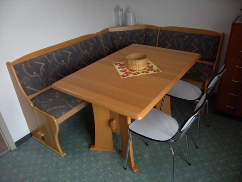 Die Wohnung bietet zwei Schlafzimmern an. Ein Schlafzimmer mit einem Doppelbett und ein Schlafzimmer mit zwei Einzelbetten. Kommoden und Tisch zur Verfügung. Bettwäsche vorhanden und im Preis nicht inbegriffen. Wohnzimmer: