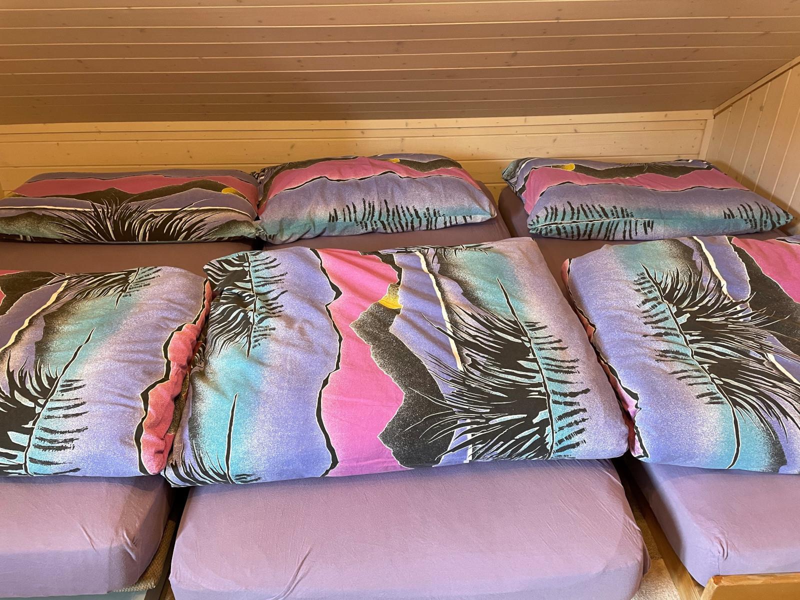 Die Wohnung bietet ein Schlafzimmer mit Doppelbett und ein Schlafzimmer mit zwei Einzelbetten. Im 3. Obergeschoss sind 3 weitere Doppelzimmer und ein Dreibettzimmer. Diese Zimmer erreicht man über eine Treppe ausserhalb der Wohnung. Alle Zimmer sind mit genügend Abstellplatz ausgestattet, das eine Doppelzimmer im 3.Obergeschoss ist zusätzlich noch mit TV ausgestattet. Bettwäsche vorhanden und im Preis nicht inbegriffen. Wohnzimmer: