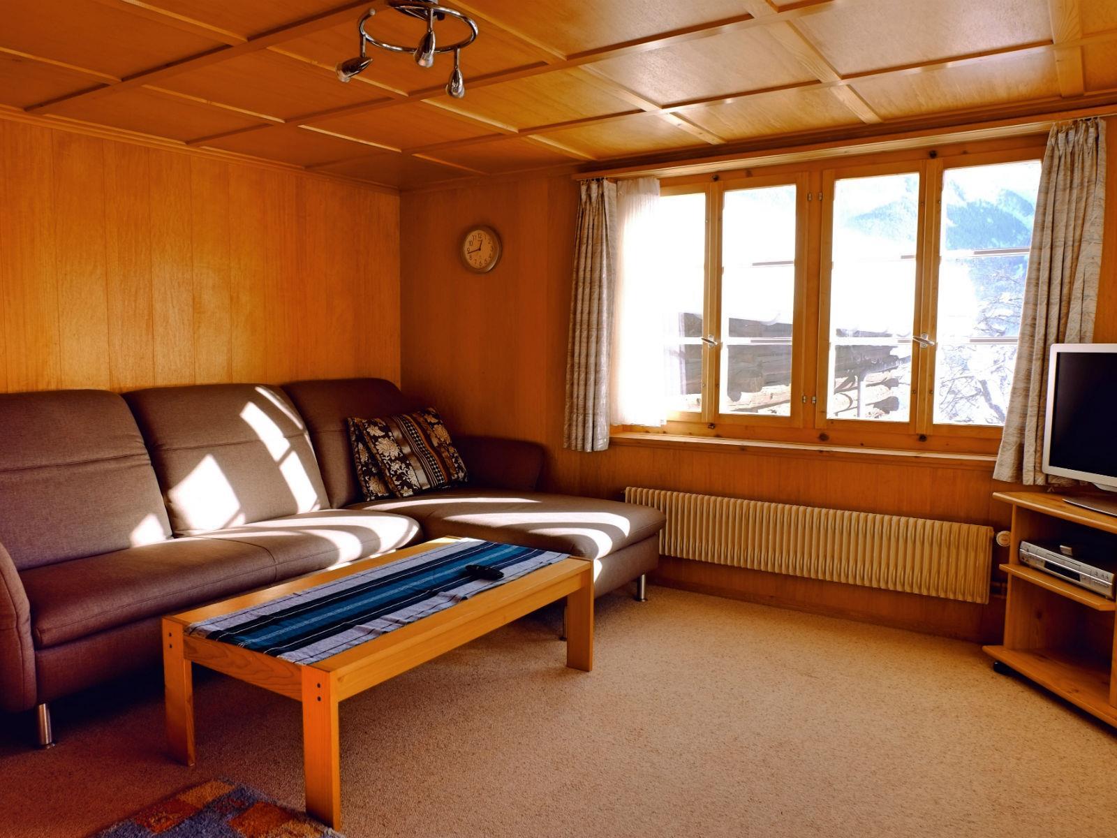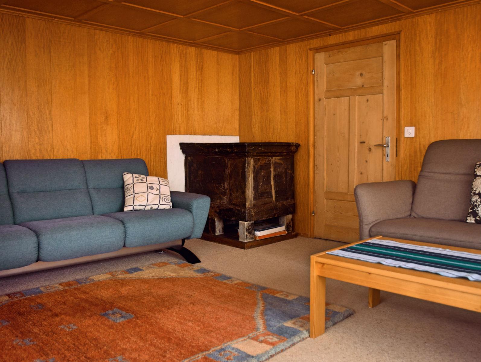 Grosses und gemütliches Wohnzimmer mit Sofa, Sitzecke und TV. WLAN auf Anfrage vorhanden (CHF 15.00 pro Aufenthalt) Küche: