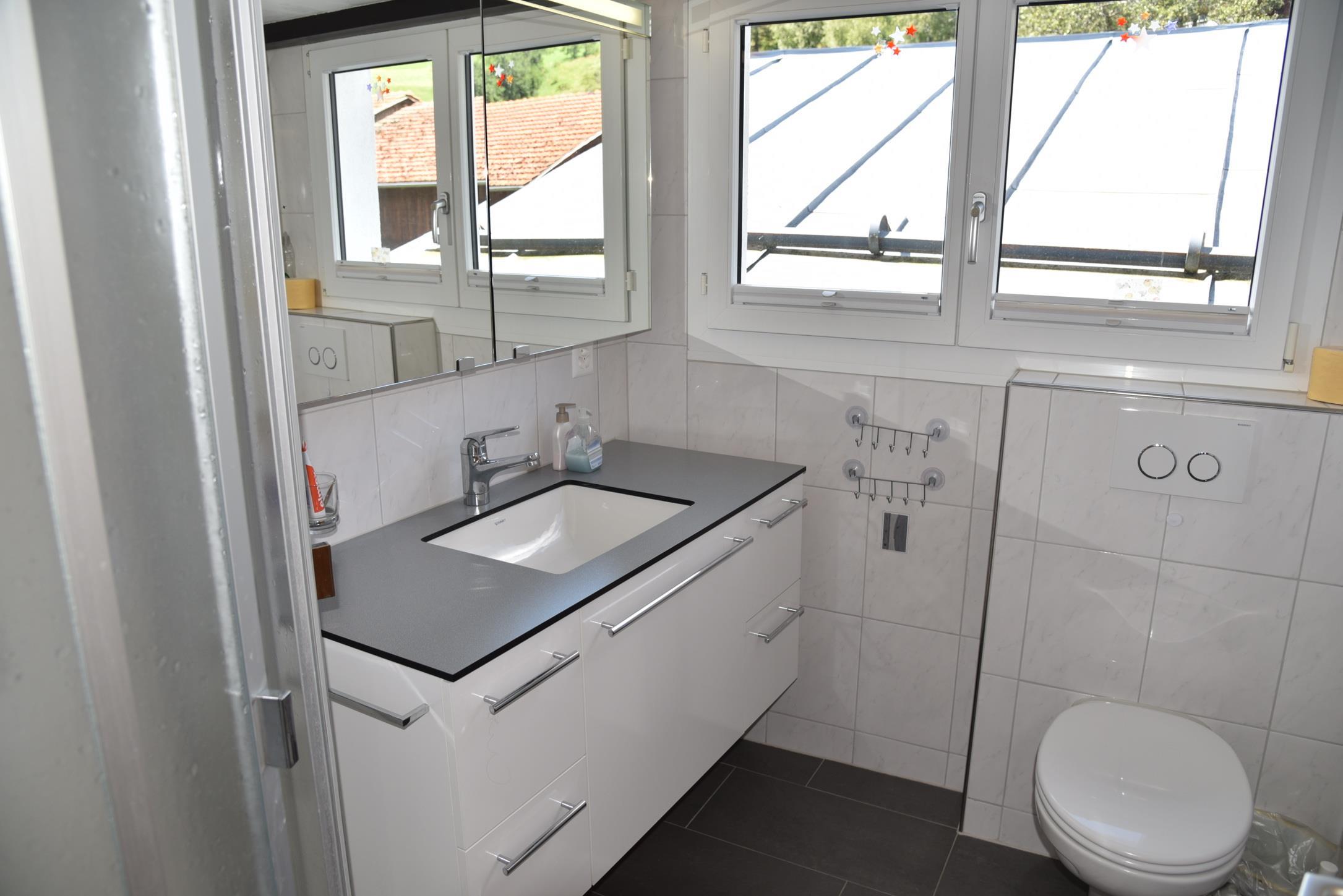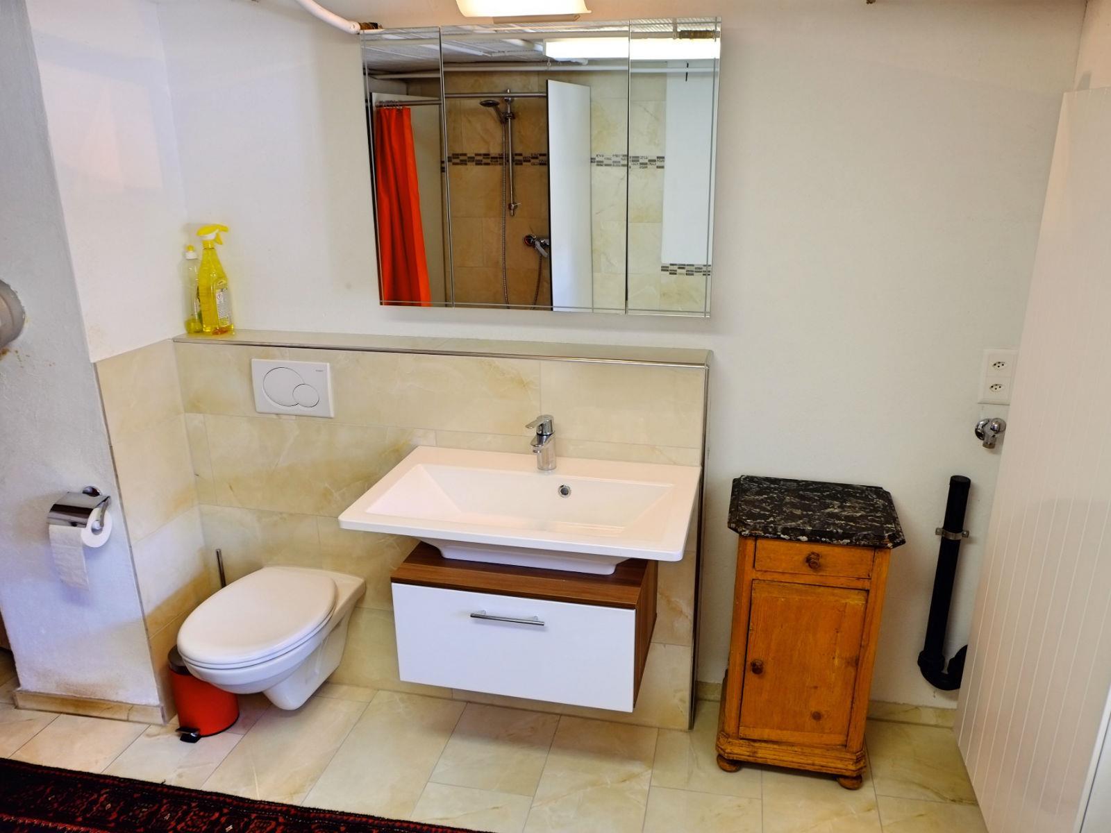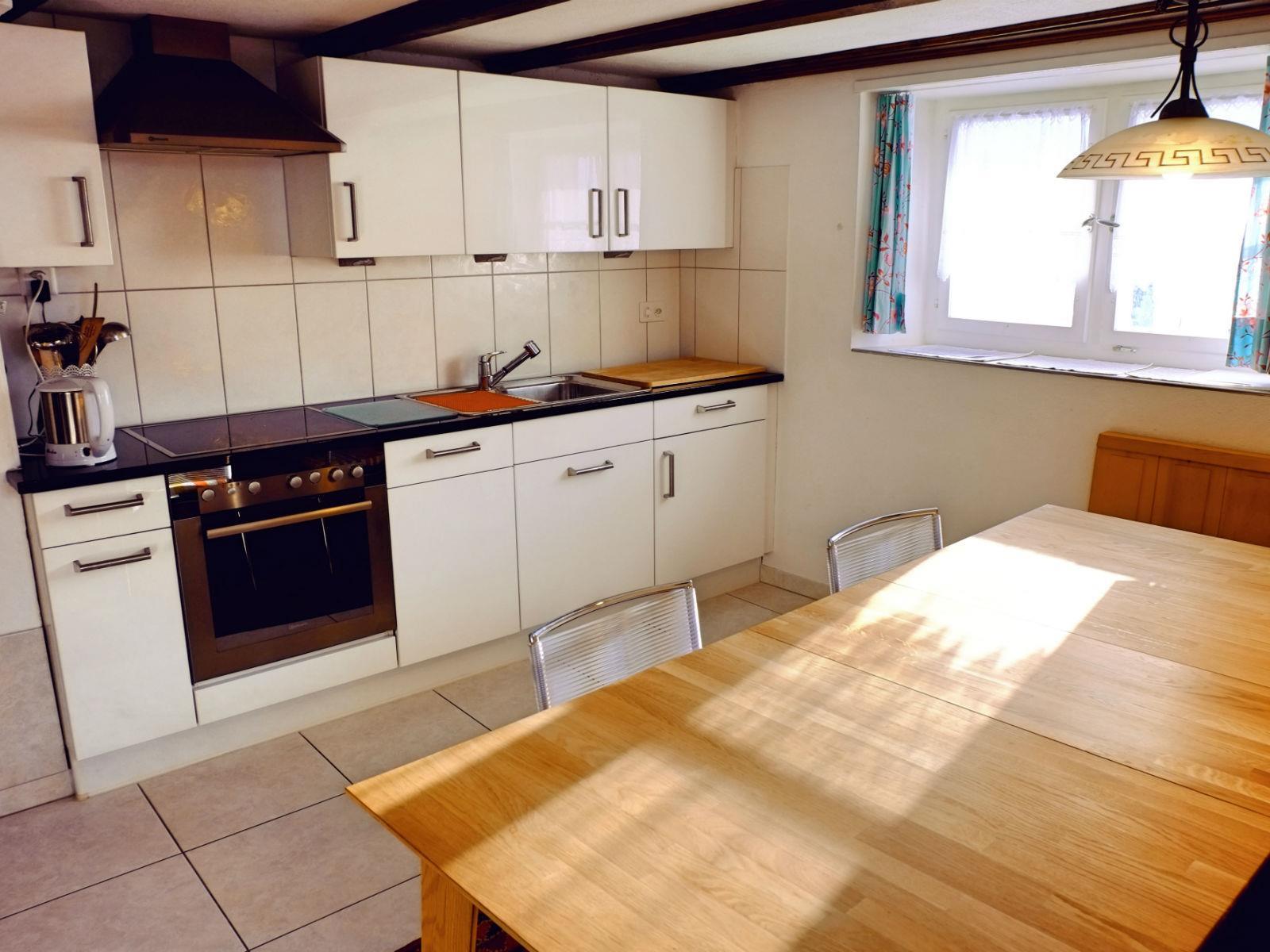 Gut eingerichtete Küche mit einem auf beiden Seiten ausziehbaren Tisch, Raclette- & Fondue-Set, Nespresso-Kaffeemaschine (Kapseln bitte selber mitbringen), Gerschirr für 14 Personen, Geschirrspülmaschine und Backofen. Küchenwäsche vorhanden und im Preis inbegriffen. Badezimmer:
