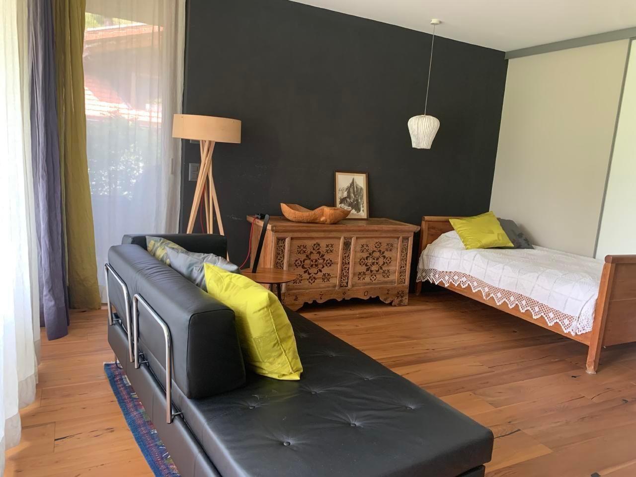 Im Inneren des Chalets erwartet Sie eine luxuriöse Ausstattung, die keine Wünsche offenlässt. Die modernen Annehmlichkeiten und die großzügige Raumaufteilung, kombiniert mit hochwertigen Materialien und edlen Möbeln, bieten einen Wohnkomfort der Extraklasse. Die Wohnzimmer sind gemütlich mit Sofa, Sesseln, einem Cheminee und einem Sofa-Bett eingerichtet, das sich bei Bedarf in zwei komfortable Betten umwandeln lässt. Im Schlafzimmer finden Sie ein Kingsize Bett, eine Ankleide, einen Pult und einen Safe. Die voll ausgestattete Küche wird ergänzt durch eine Auswahl an hochwertigen Bio-Produkten und Basisnahrungsmitteln für Ihre Selbstversorgung.