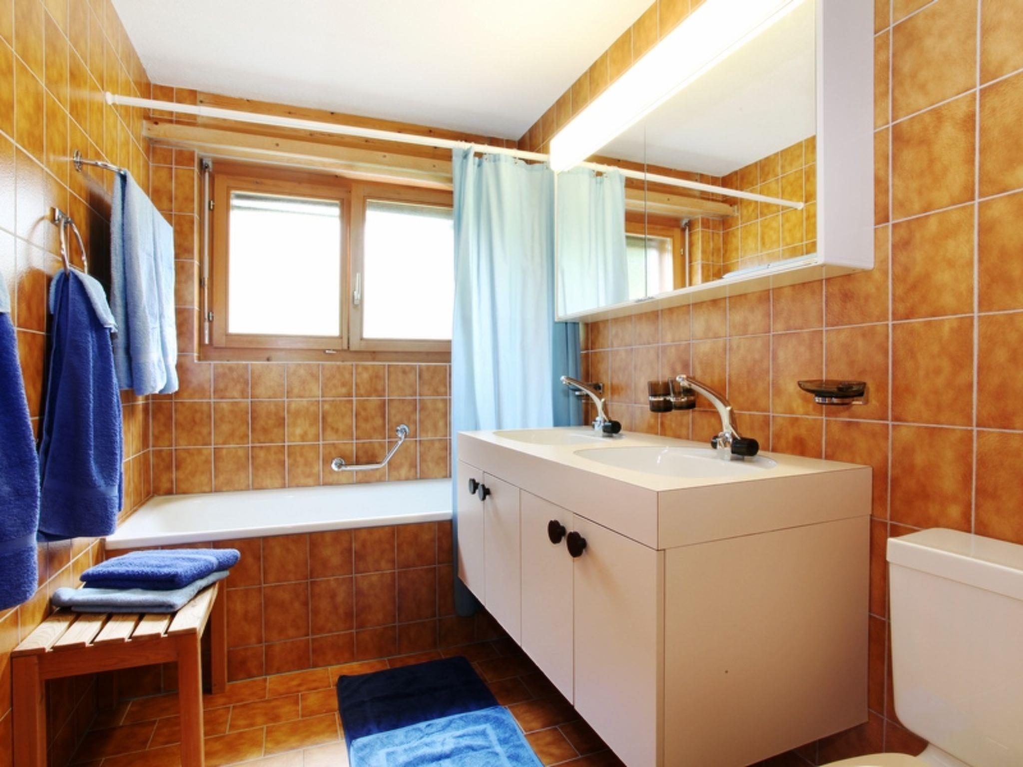 60 m2. Weitere Angaben des Anbieters: 2.5 Zimmer-Wohnung im Parterre. Wohnzimmer mit Sofabett + Wohnwand mit 2 Klappbetten, Küche mit Essecke, zum Wohnraum nicht abgeschlossen.1 Schlafzimmer mit 2 Betten. Badzimmer mit Badewanne/WC und Doppellavabo. Radio/TV, Waschmaschine und Tumbler, Fonduecaquelon und Racletteofen vorhanden. Nichtraucher-Wohnung. Küchen- und Badwäsche vorhanden und inbegriffen. Die Wohnung ist mit einem Geschirrspüler ausgestattet. Die Garage ist im Preis inbegriffen. Bodenbelag: Platten und Teppich