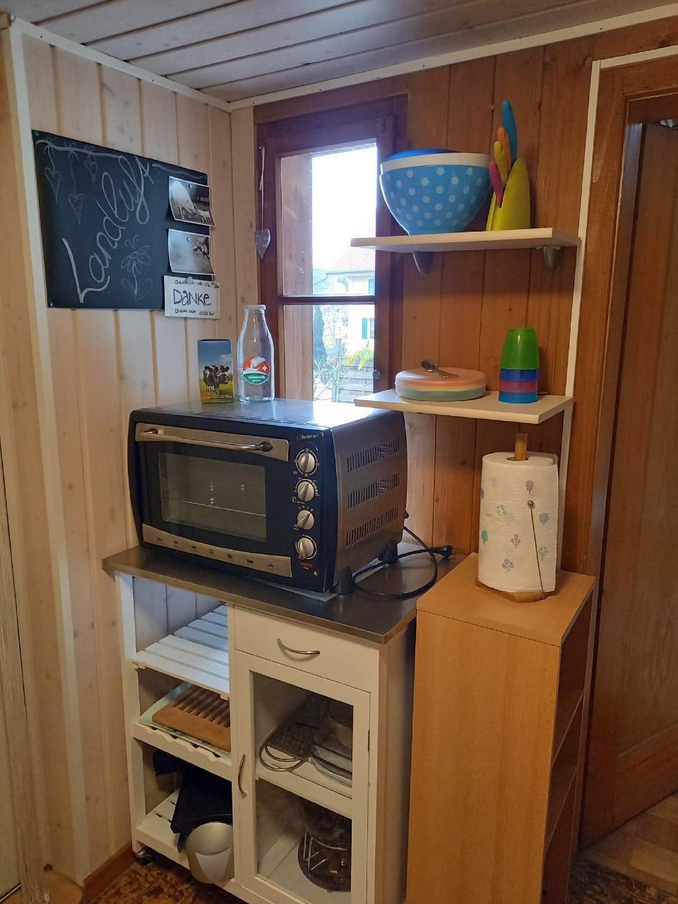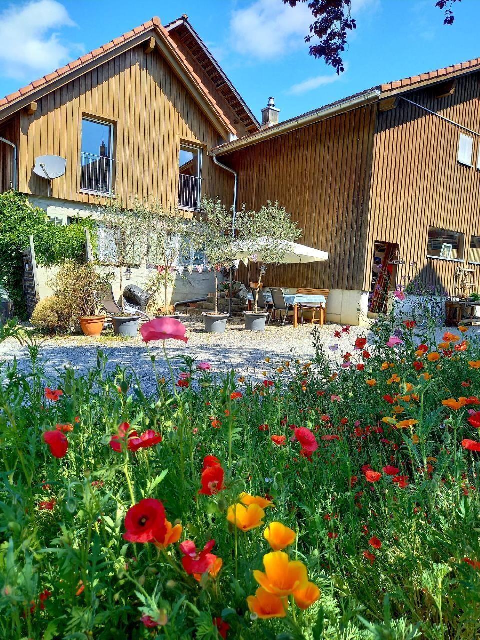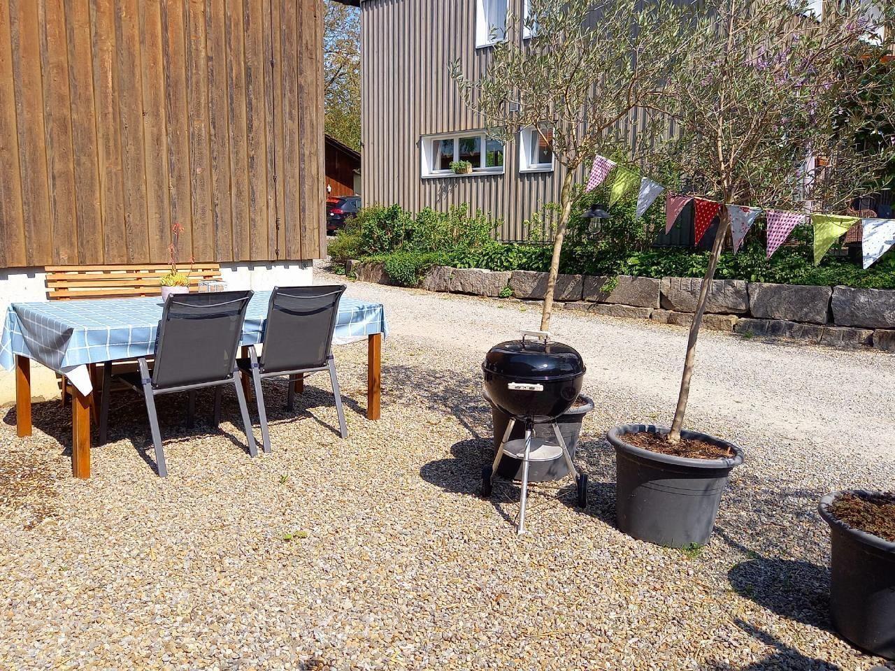 Zusätzlich zur Wohnung steht Ihnen ein grosser, heller Aufenthaltsraum mit Tischen, Stühlen, Sofa, Getränkekühlschrank, Kaffemaschine und vielen Spielsachen zur Verfügung. Der Parkplatz sowie der eigene Sitzplatz mit Tisch und Stühlen befindet sich vor der Ferienwohnung. Auch ein Spiel- und Grillplatz inmitten der Hochstammbäume steht zum Gebrauch bereit.