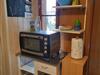Küche: zwei Kochplatten, Backofen, Kühlschrank mit Gefrierfach, Filterkaffemaschine, Wasserkocher