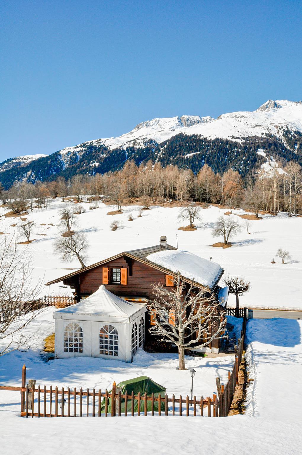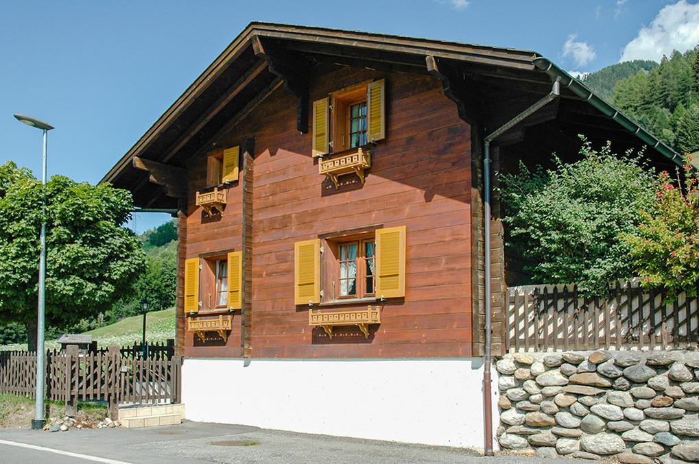Ort: Fiesch, Ortsteil Ernen. Ruhige, alleinstehende Lage. Schöner Blick auf die umliegende Bergwelt. Ortsmitte Fiesch 5 km. Seilbahn Fiesch 4,5 km.