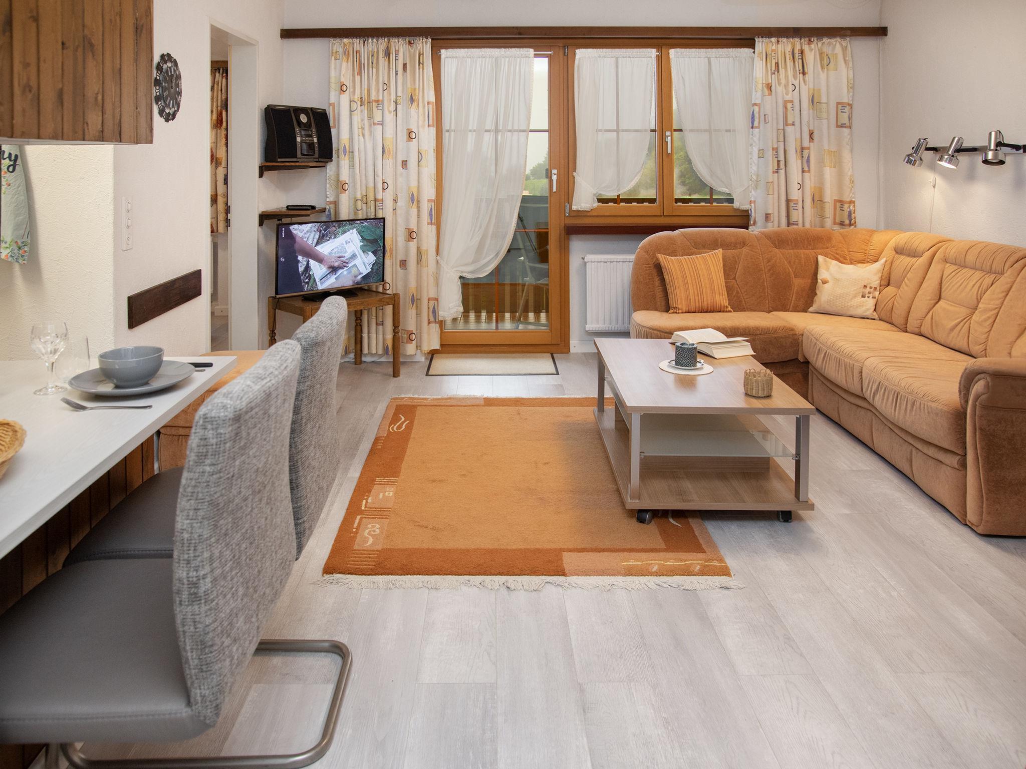"La Siala Apt.37", 2-Zimmer-Wohnung 34 m2 im 2. Stock. Komfortabel und gemütlich eingerichtet: Wohn-/Esszimmer mit 1 Diwanbett und Kabel-TV (Flachbildschirm). Ausgang zum Balkon. 1 Doppelzimmer. Kochnische (2 Glaskeramikplatten, elektrische Kaffeemaschine). Bad/WC. Balkon 8 m2, Südlage. Balkonmöbel. Schöne Sicht auf die Berge, das Tal und die Landschaft. Zur Verfügung: Haartrockner. Internet (WLAN, gratis). Bitte beachten: Nichtraucher-Unterkunft.