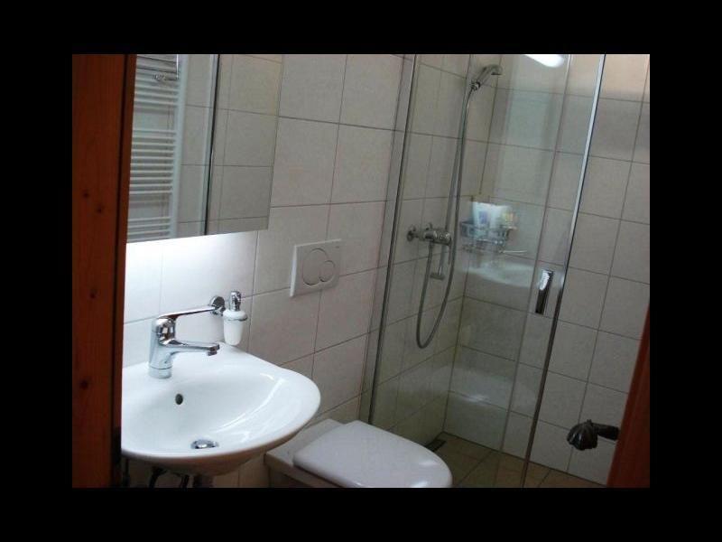 Viel Platz zum duschen, eine beheizbare Tüechlistange und den Haartrockner finden Sie im modernen Badezimmer. Auch ein heller Naturkorkboden und Teppiche sorgen für wohlige Wärme überall.