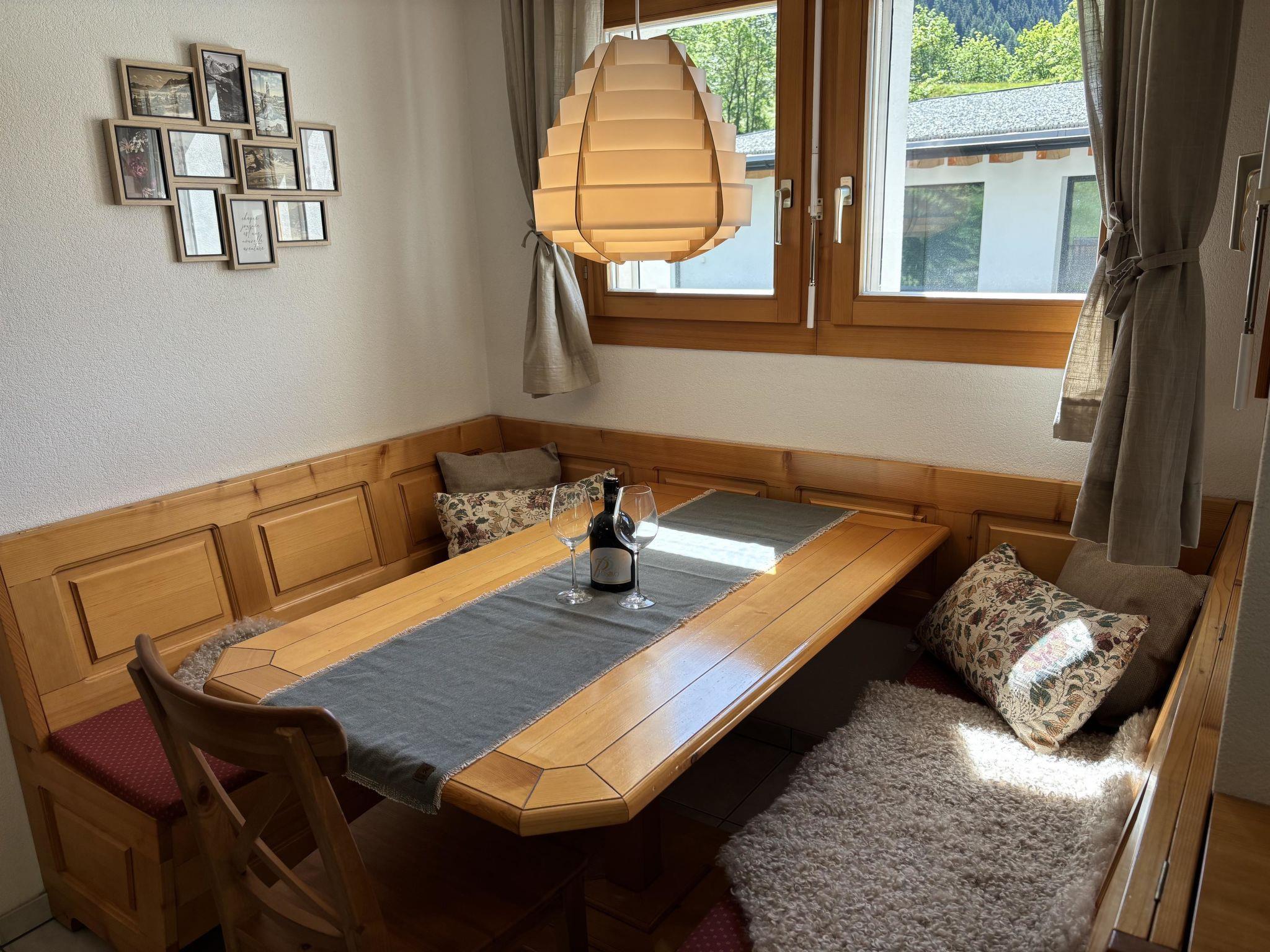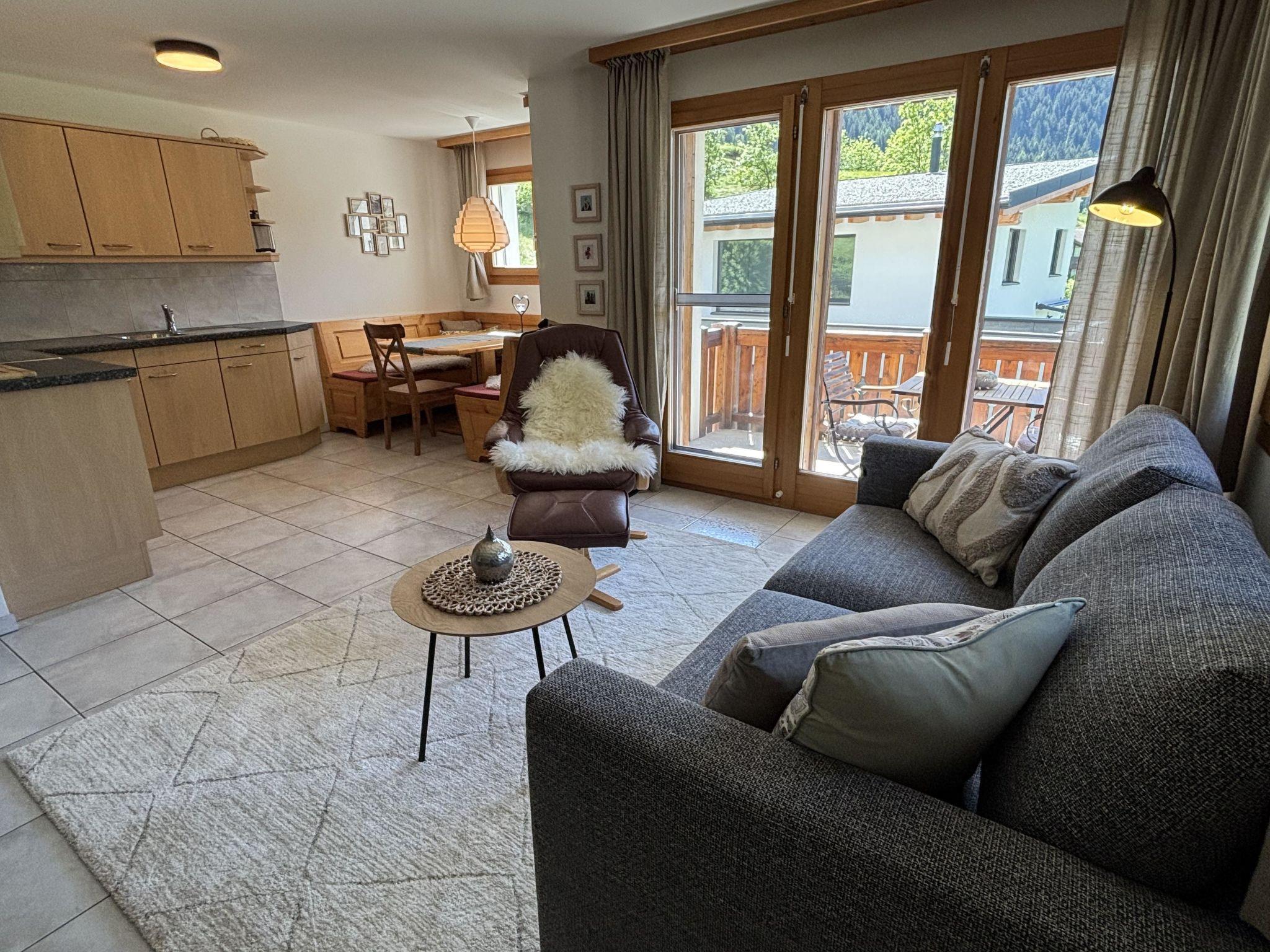 Die Wohnung verfügt über einen grosszügigen Wohn- und Essbereich mit gemütlicher Sofaecke, Esstisch und komplett ausgestatteter Küche. Ein separates Schlafzimmer mit Doppelbett sowie ein Bettsofa im Wohnzimmer bieten Platz für bis zu drei Personen. Das Badezimmer ist mit einer Badewanne mit Duschfunktion ausgestattet. Für Sportausrüstung steht ein gemeinschaftlich genutzter Abstellraum zur Verfügung. Ein Balkon mit Aussicht rundet das Angebot ab.