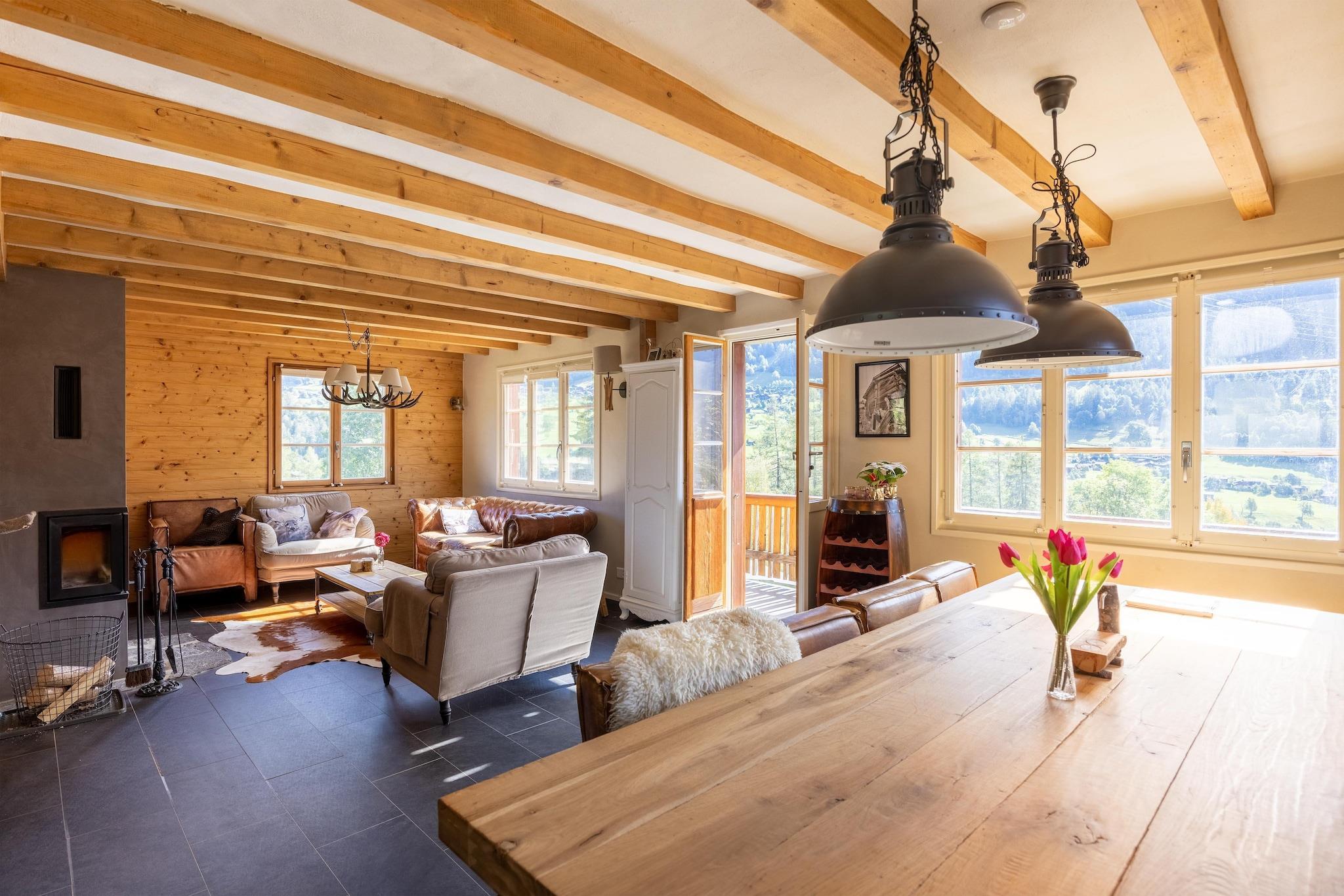 Das Chalet Verrel ist ideal gelegen und bietet eine atemberaubende Aussicht, während es nur einen Steinwurf vom Dorf entfernt ist. Dieses wunderschön gestaltete Chalet verfügt über einen oberen und einen unteren Teil, die einzeln oder zusammen gemietet werden können, um größere Gruppen unterzubringen. Der obere Teil, der für bis zu 8 Gäste geeignet ist, wurde komplett renoviert und verfügt über eine geräumige, luxuriöse Küche mit Kombi-Dampfofen, Kombi-Mikrowelle/Backofen und Cerankochfeld. Freuen Sie sich über Fußbodenheizung, einen modernen Kamin und stilvolle Möbel im gesamten Gebäude. Der erste Stock umfasst eine praktische Toilette und ein Badezimmer mit Dampfdusche. Treten Sie hinaus auf den weitläufigen Balkon, komplett mit Tischen, Stühlen, einem Außenwasserhahn und einem Gasgrill, perfekt für Mahlzeiten im Freien. Im obersten Stock finden Sie ein Badezimmer mit Regendusche und vier komfortable Schlafzimmer (zwei Doppelbetten und zwei Zimmer mit zwei Einzelbetten) sowie einen zweiten Balkon, auf dem Sie die atemberaubende Aussicht genießen können. Im Keller gehören zu den gemeinsam genutzten Annehmlichkeiten zwei Waschmaschinen, ein Trockner, ein Grill, Kinderspiele, Raclette-Sets, eine Crêpe-Pfanne, Hochstühle und ein Babybett. Den Mietern stehen eine Garage und mit etwas Parkgeschick zwei weitere Stellplätze vor dem Garagentor zur Verfügung. Öffentliche Parkplätze stehen nur 100 Meter entfernt zur Verfügung.