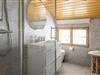 Im zweiten Stock gibt es drei Schlafzimmer und ein Badezimmer mit Dusche, WC, Waschbecken. Das geräumige Hauptschlafzimmer mit Doppelbett hat ein eigenes Badezimmer mit Waschbecken, Bad und WC und kleinem Balkon.