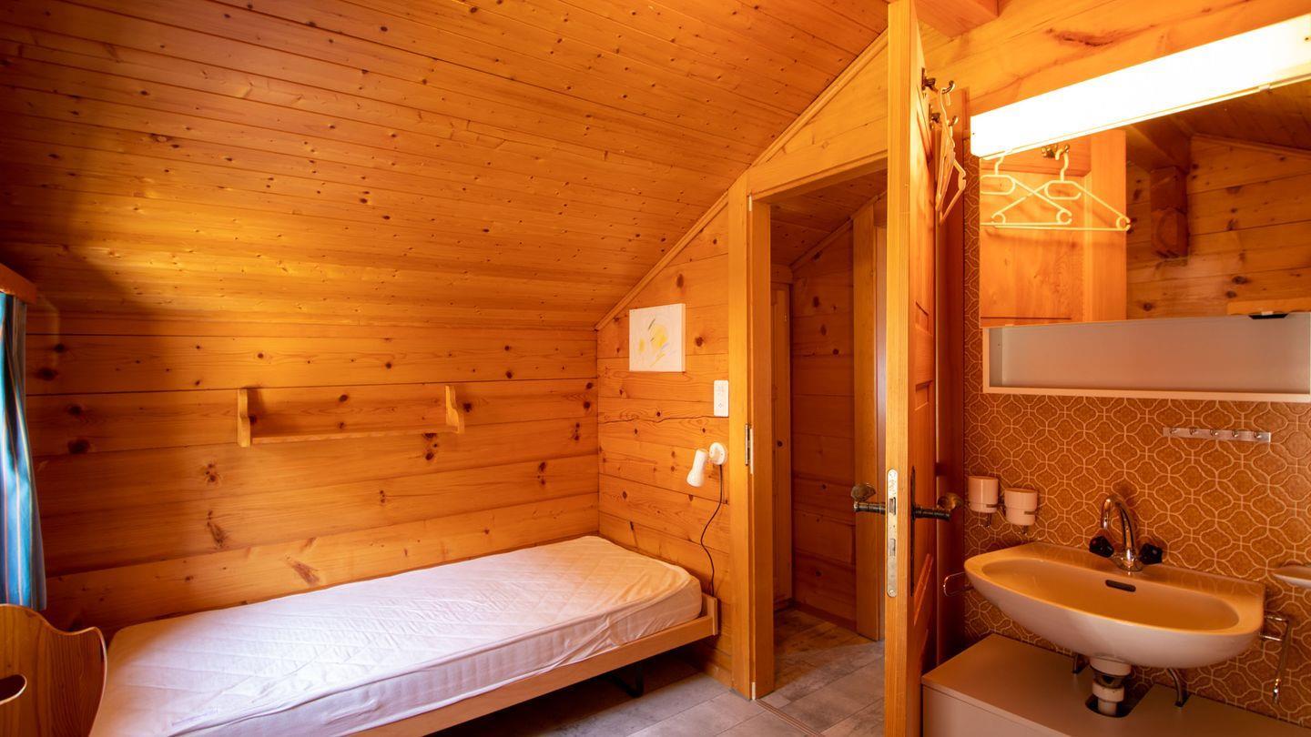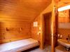 Daneben befindet sich ein Schlafzimmer für 2 Personen, ein Badezimmer mit Dusche und Lavabo, Waschmaschine und Trockner, sowie ein separates WC. 2 weitere Schlafzimmer für je 2 Personen sind im Dachgeschoss und haben jeder eine Waschgelegenheit.