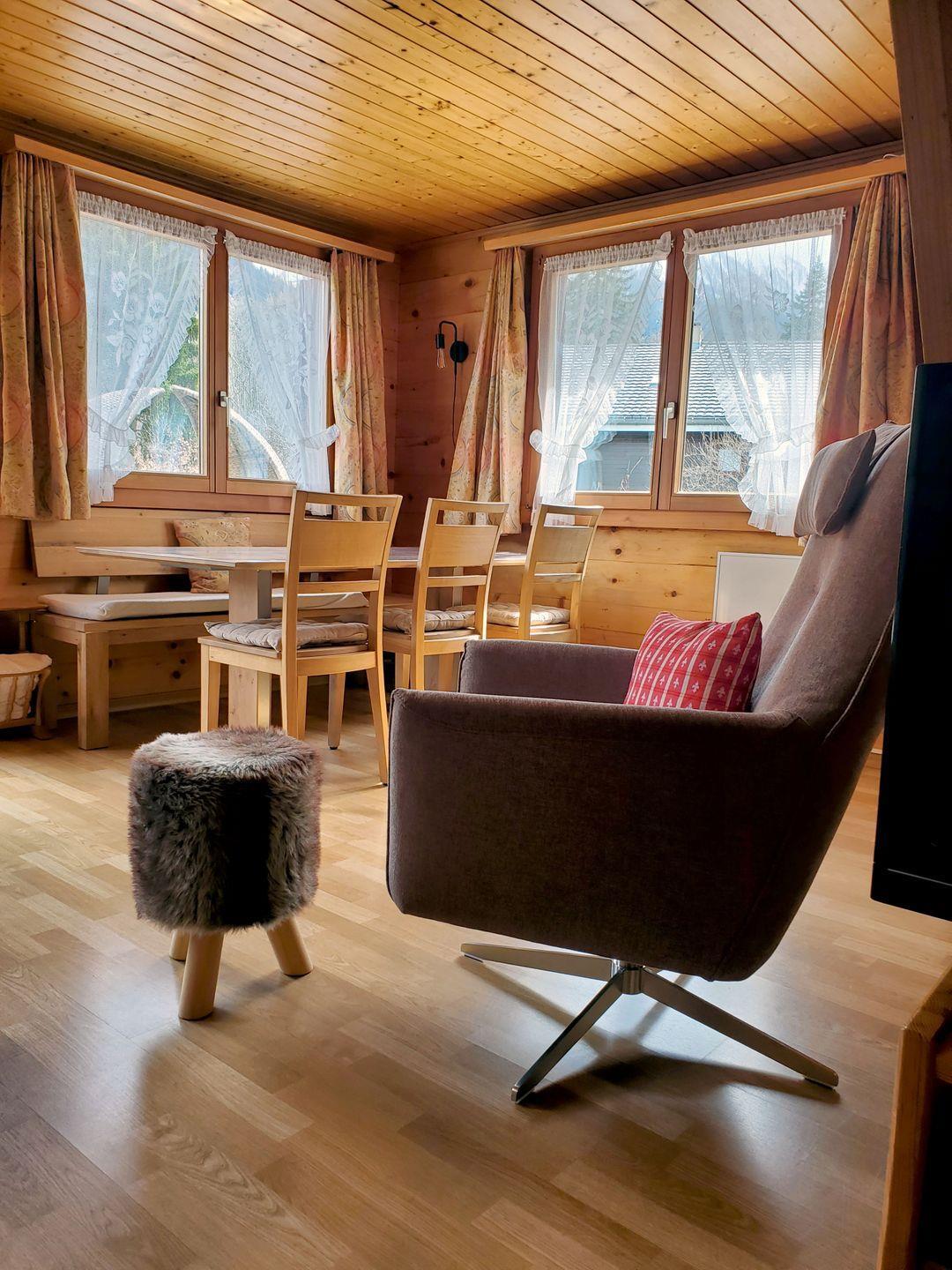 Das Haus liegt in ruhiger Lage in der Nähe eines kleinen Waldes mit freier Aussicht. Private Parkplätze sind direkt beim Haus sowie eine Liege- und Spielwiese mit Garten-Cheminée und zahlreichen Sitzmöglichkeiten.