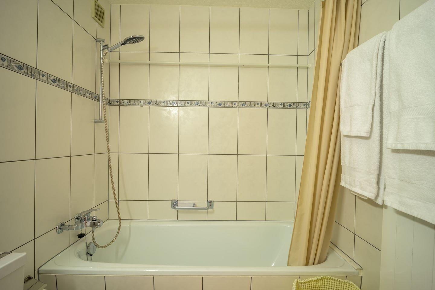 Das Badezimmer ist mit einer Dusch-Badewanne, Wc und Lavabo ausgestattet und rundet das Raumangebot dieser komfortablen Wohnung ab.