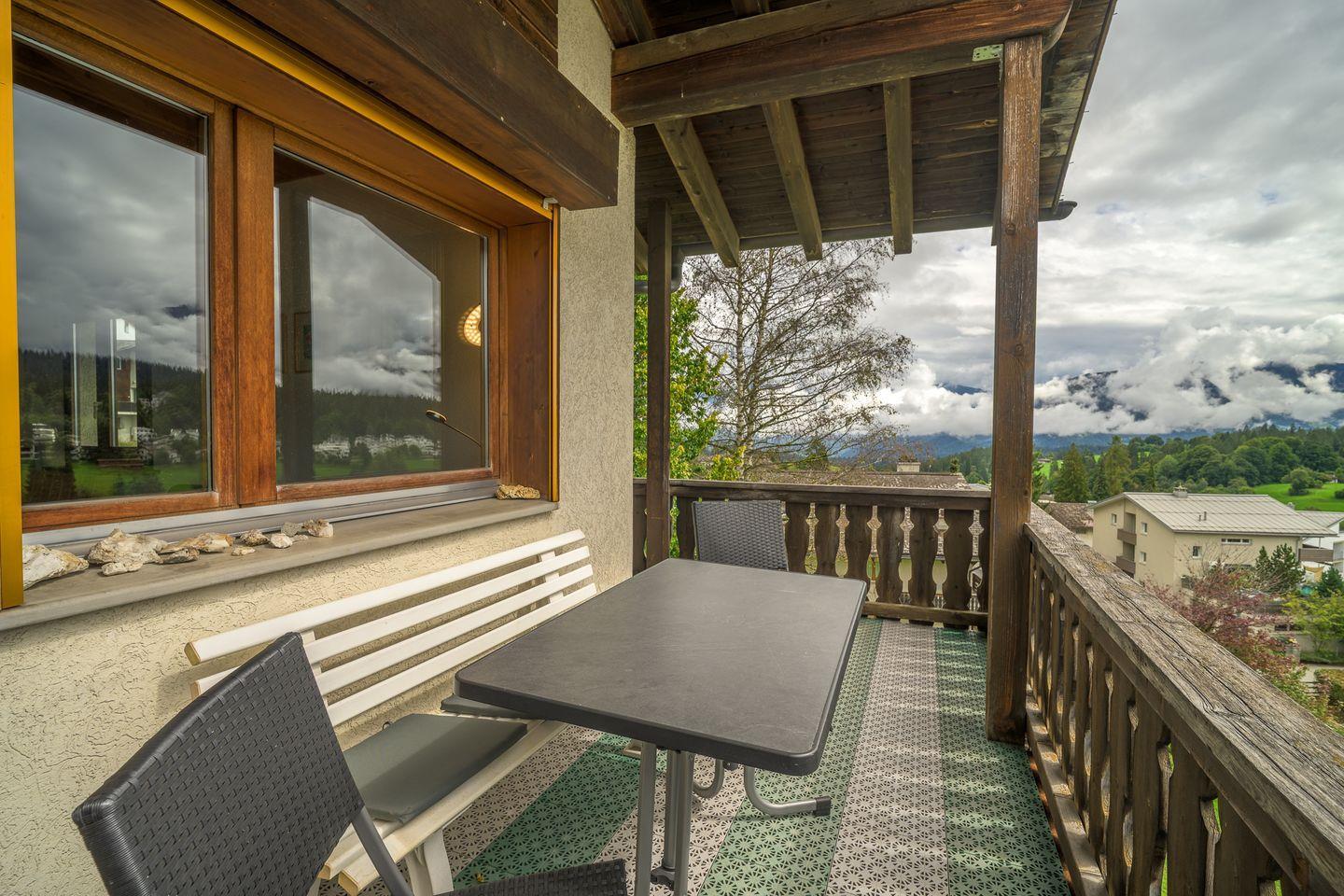 Die grosszügige Terrasse eröffnet einen phantastischen Blick auf die Bünde Alpen - ideal für entspannte Morgenkaffeeds, sonnige Nachmittag oder laue Abende.
