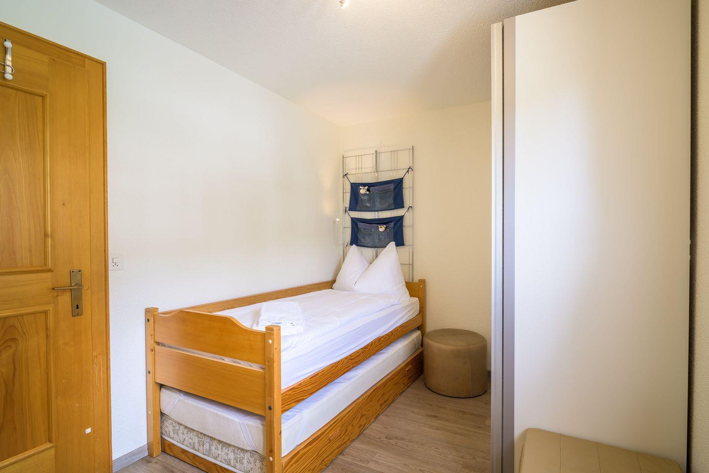 Das Masterschlafzimmer verfügt über ein Doppelbett und einen grossen Kleiderschrank. Im zweiten Zimmer stehen Ihnen zwei Einzelbetten und ebenfalls ein geräumiger Schrank zur Verfügung - ideal für Familien mit Kindern oder Reisende die getrennt schlafen möchten.