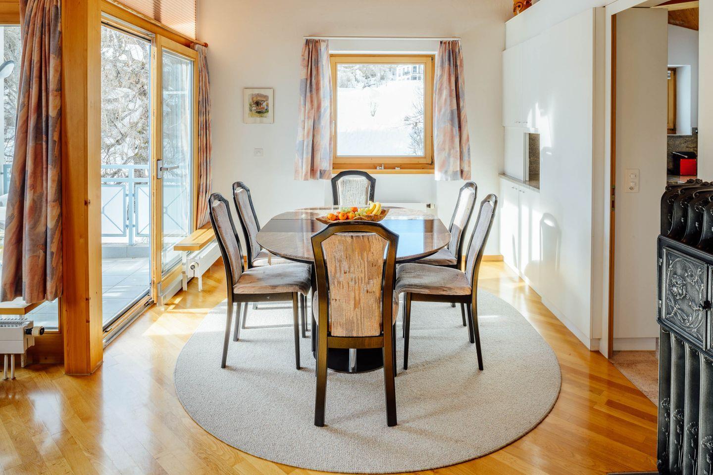 Der grosszügige Wohnraum mit Essbereich laden zu gemütlichen Abenden ein, oder lassen Sie die Seele baumeln und geniessen Sie den sonnigen Balkon mit schöner Aussicht.